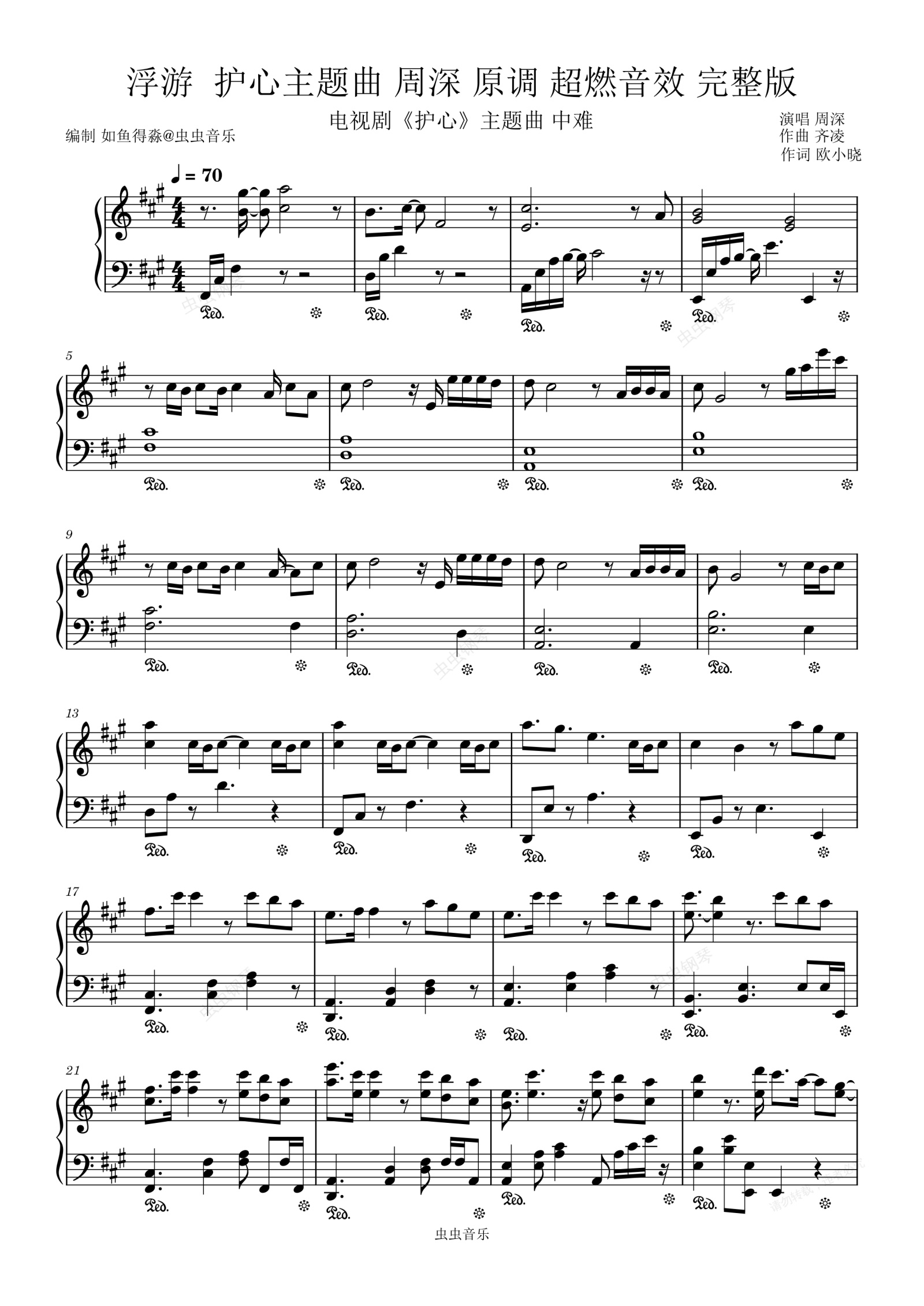 钢琴谱:浮游 护心主题曲 周深 原调 超燃音效 完整版