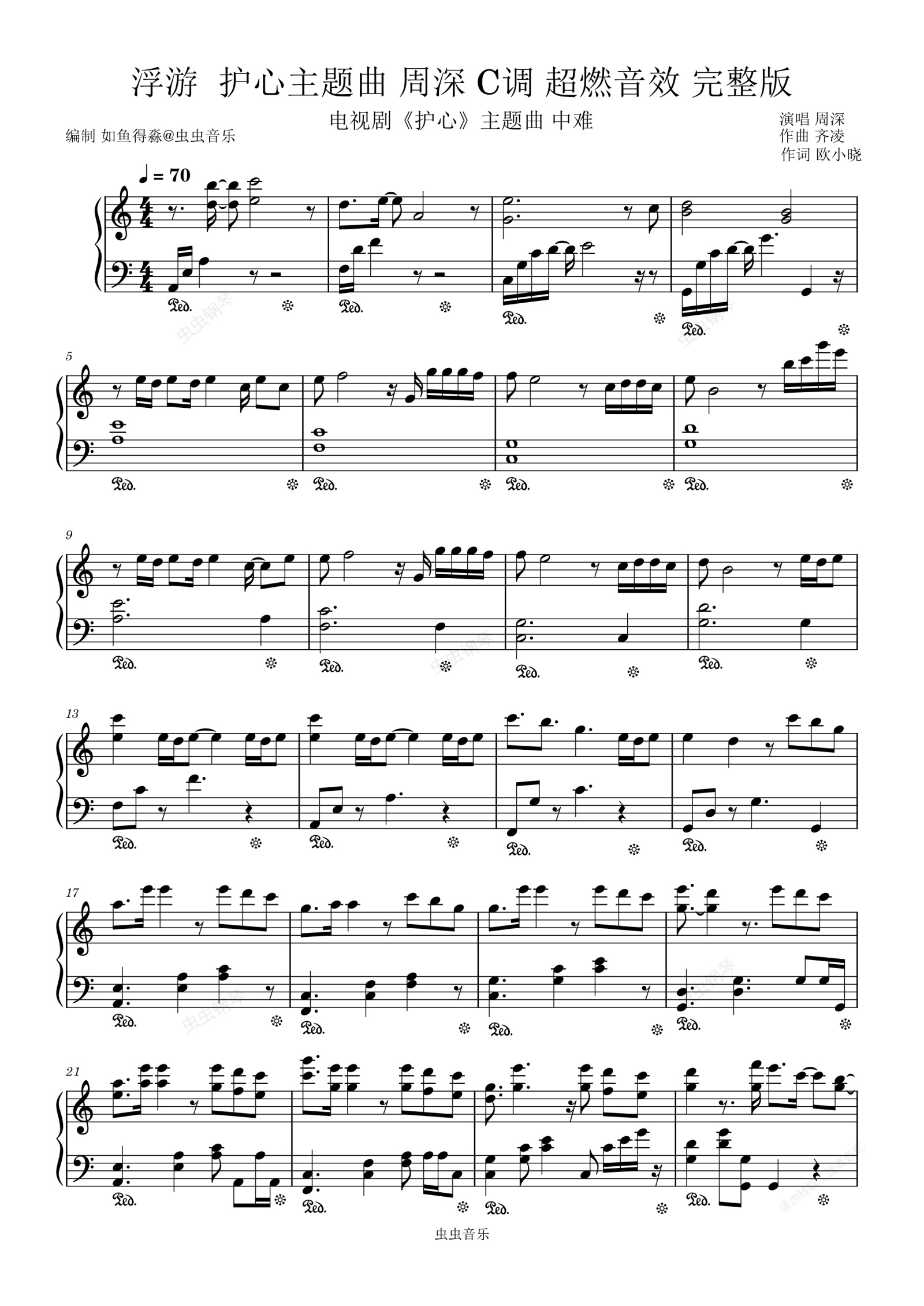 钢琴谱:浮游 护心主题曲 周深 C调 超燃音效 完整版