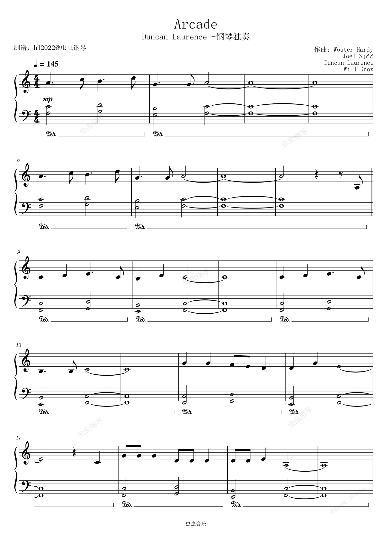 钢琴谱:Arcade - Duncan Laurence - 钢琴独奏