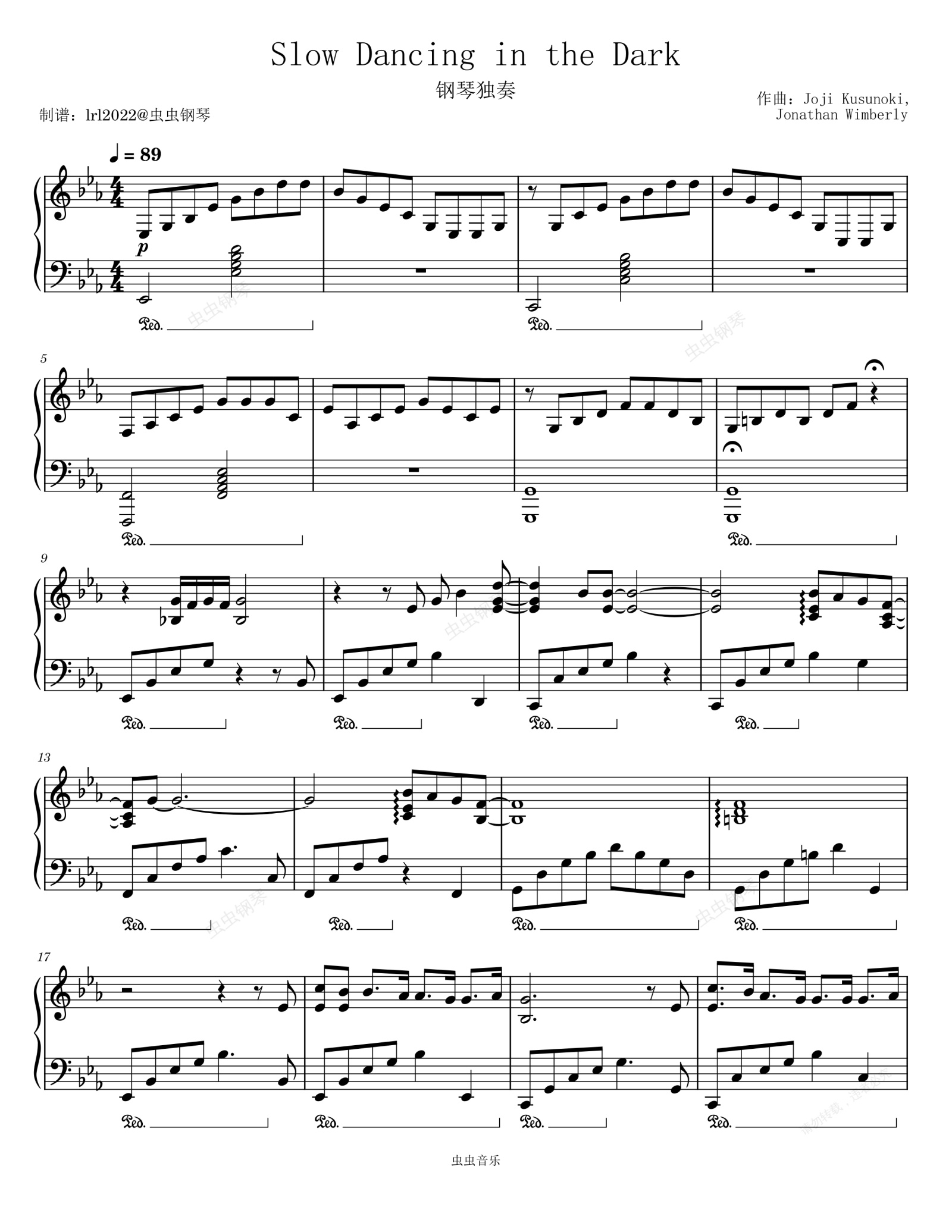 钢琴谱:Joji - Slow Dancing in the Dark - 钢琴独奏