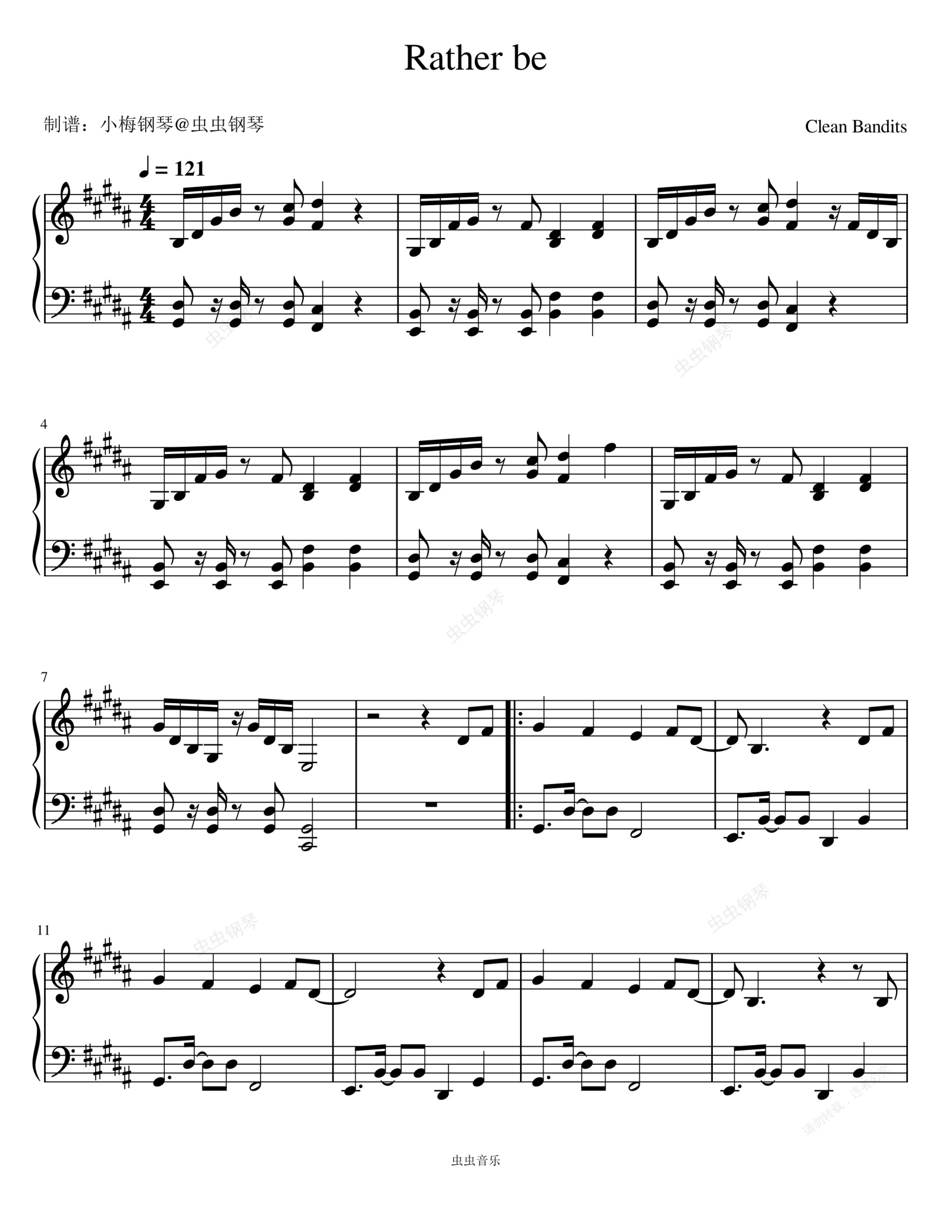 钢琴谱:Rather Be - Clean Bandit/Jess Glynne