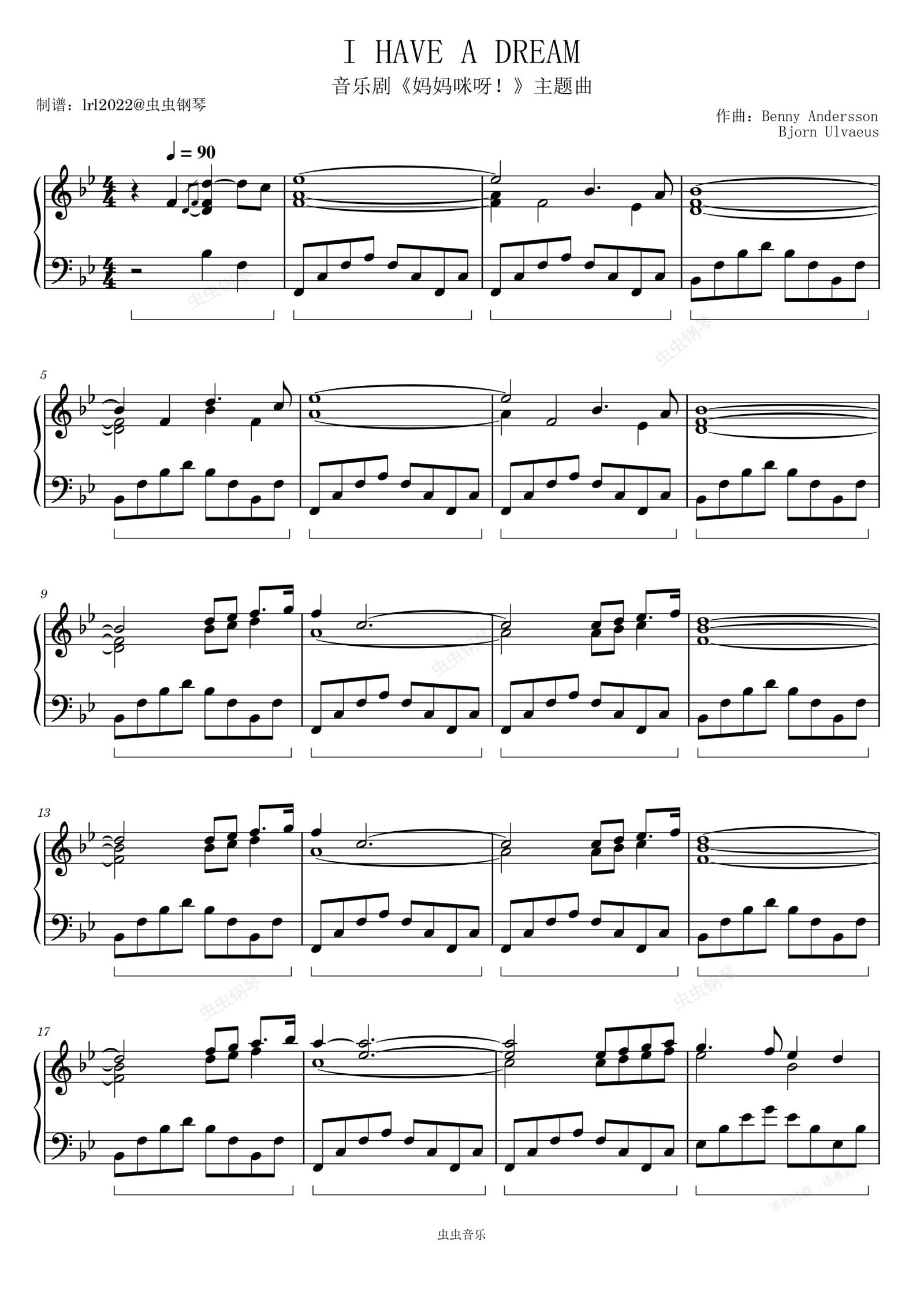 钢琴谱:I HAVE A DREAM - ABBA - 音乐剧《妈妈咪呀!》主题曲 - 钢琴独奏