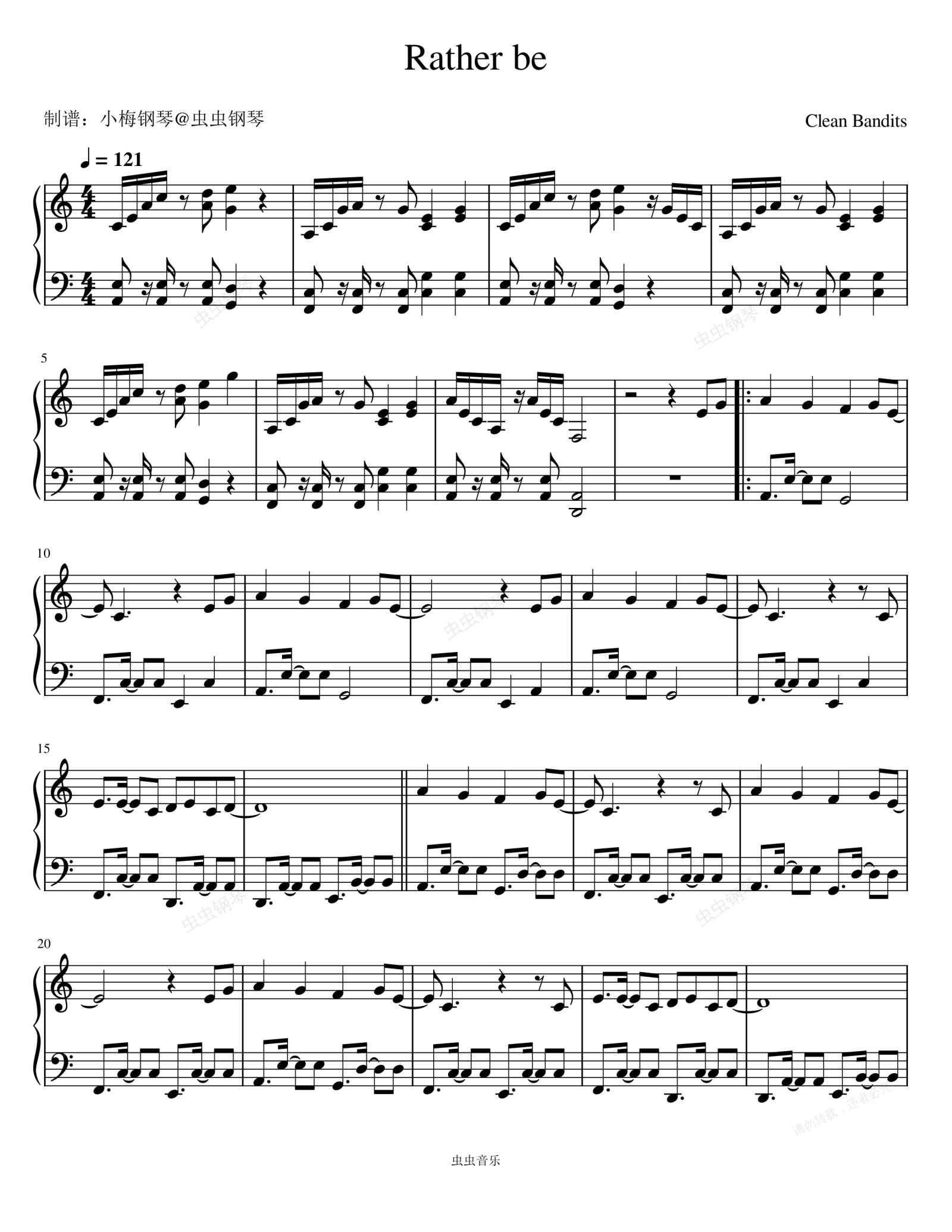 钢琴谱:Rather Be - Clean Bandit/Jess Glynne