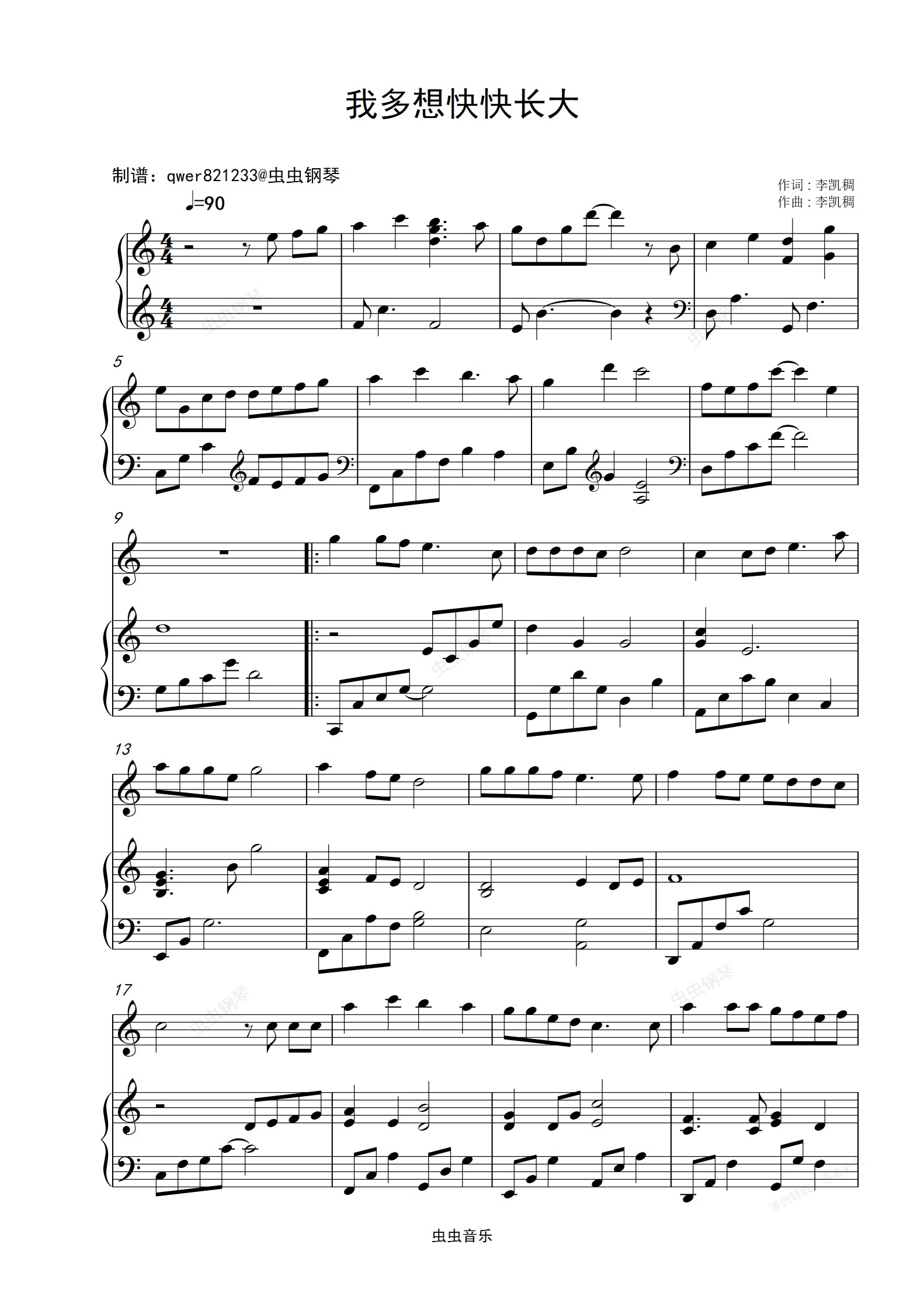 钢琴谱:《我多想快快长大》钢琴+旋律合奏