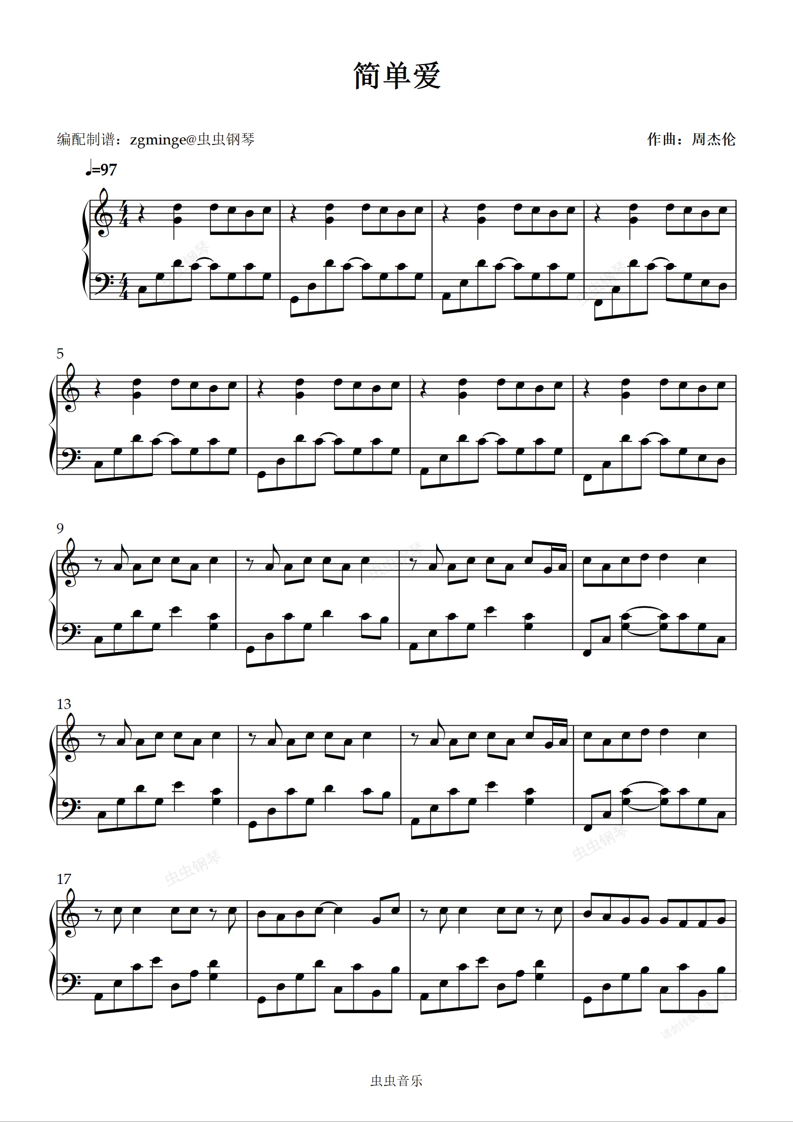 钢琴谱:简单爱 附带原版伴奏还原