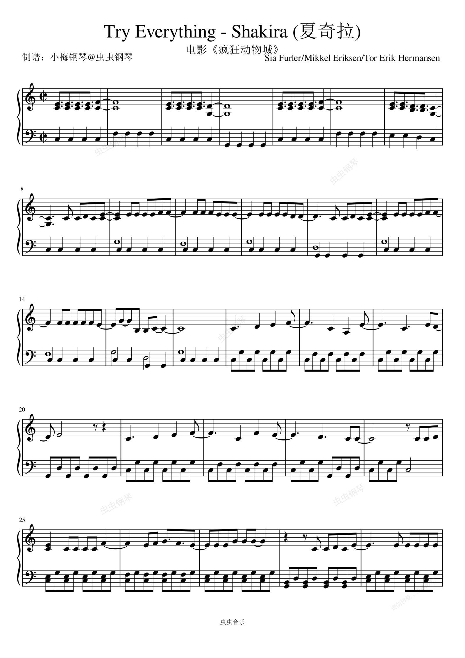 钢琴谱:Try Everything - Shakira (夏奇拉)