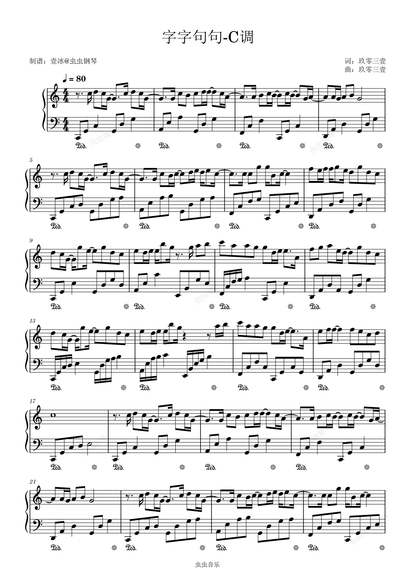 钢琴谱:字字句句//张碧晨/王赫野-C调