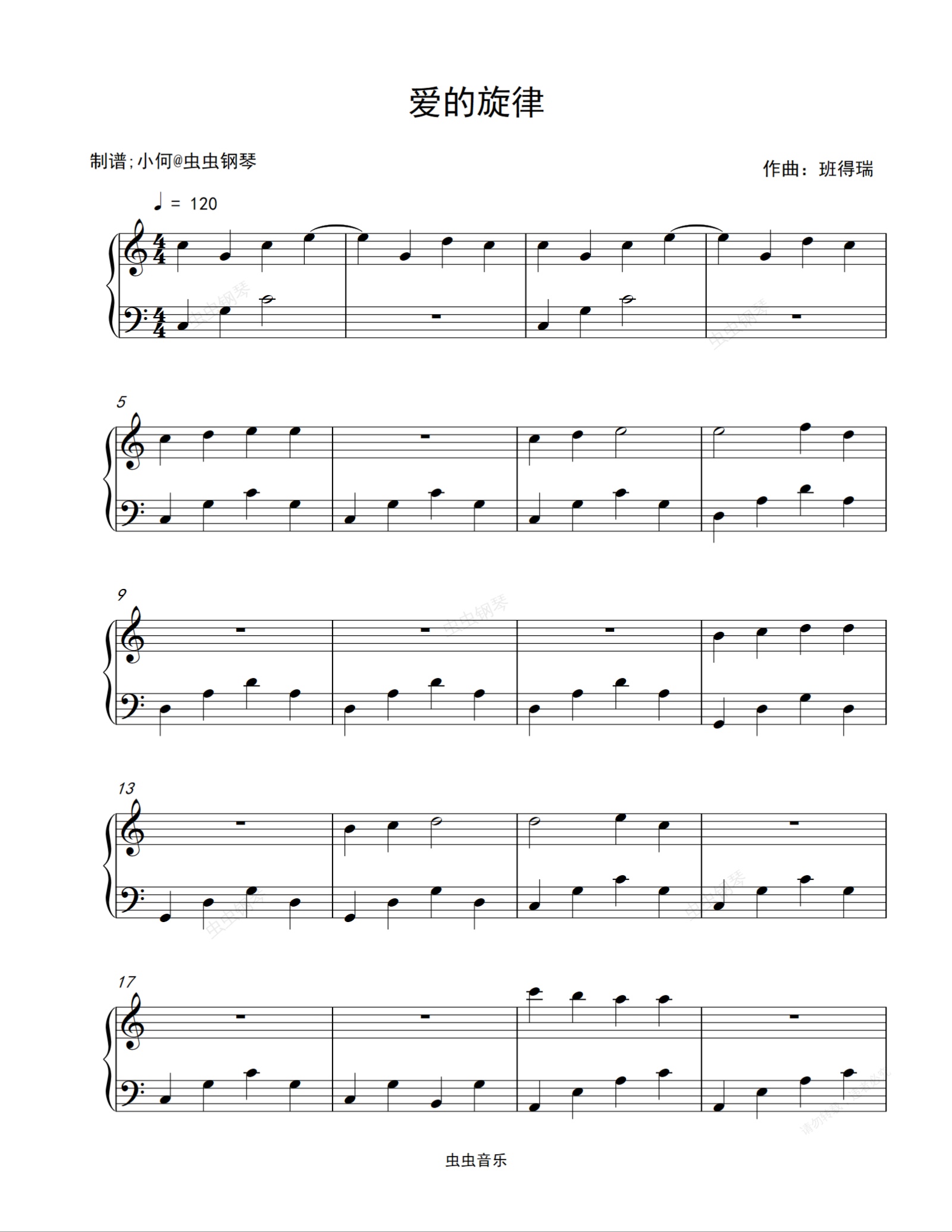 钢琴谱:冬表树-爱的旋律-班得瑞