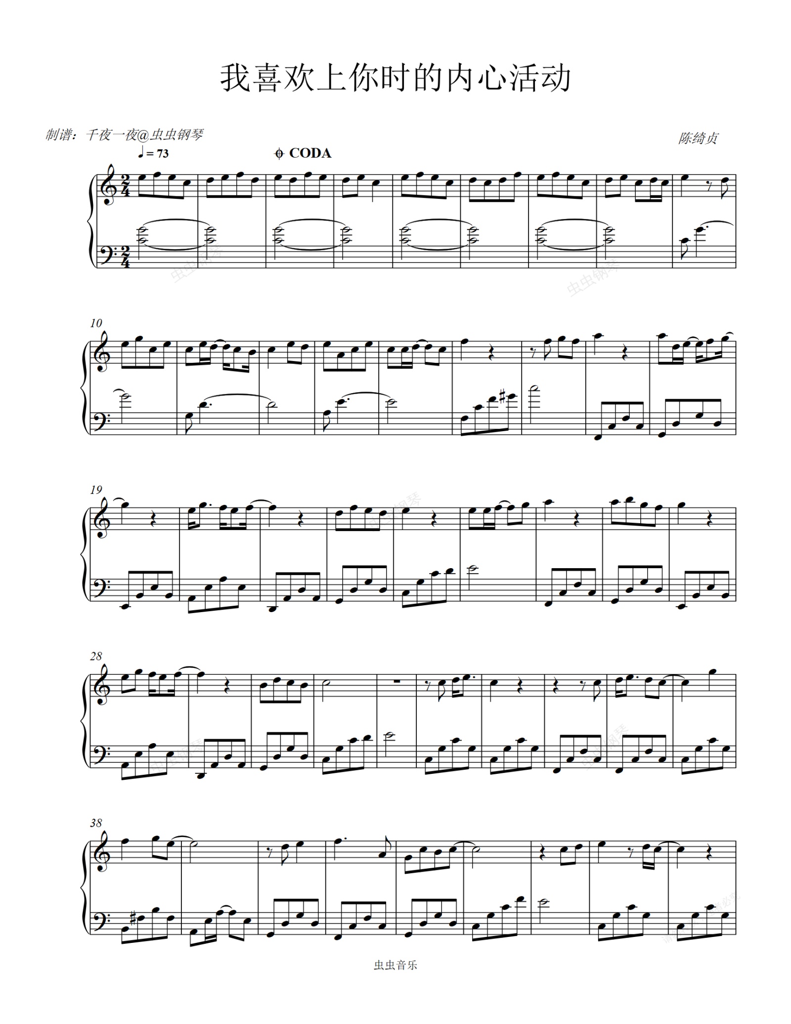 钢琴谱:《我喜欢上你时的内心活动》(电影《喜欢你》主题曲)