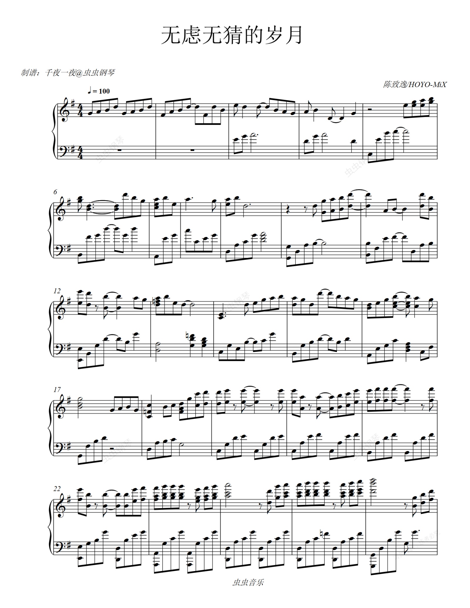 钢琴谱:无虑无猜的岁月-陈致逸 可莉EP-原神