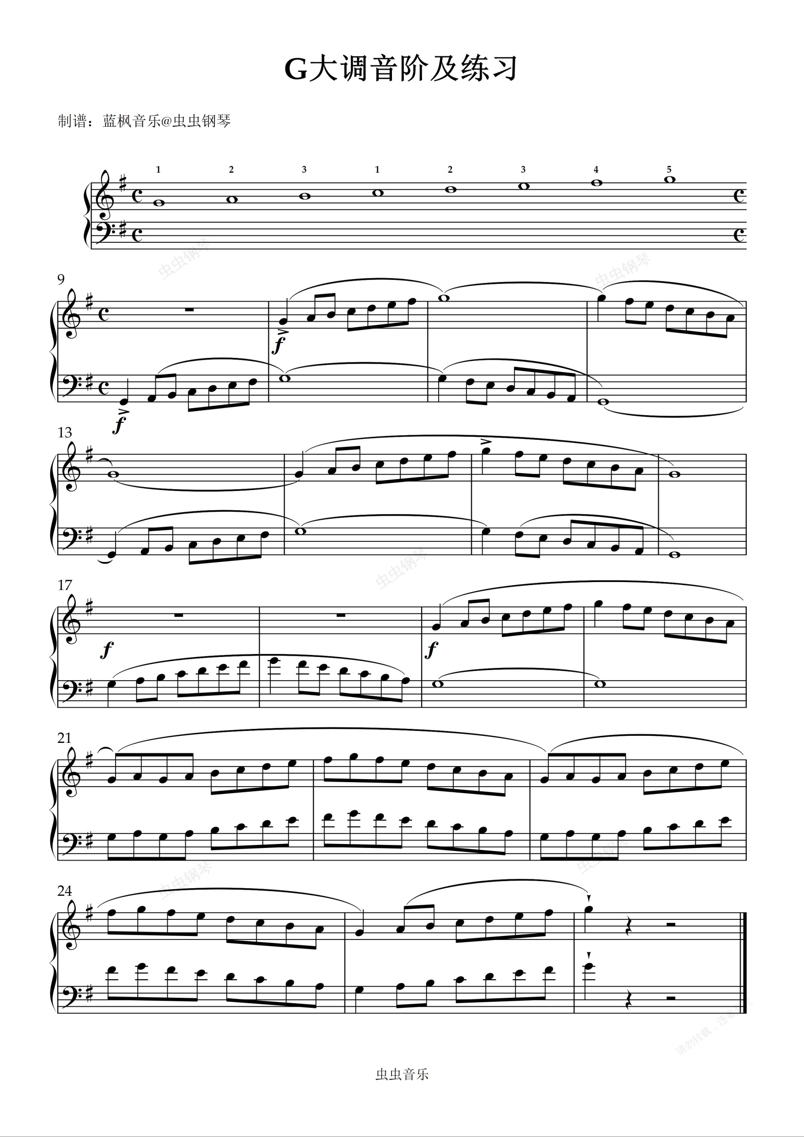 钢琴谱:G大调音阶及练习