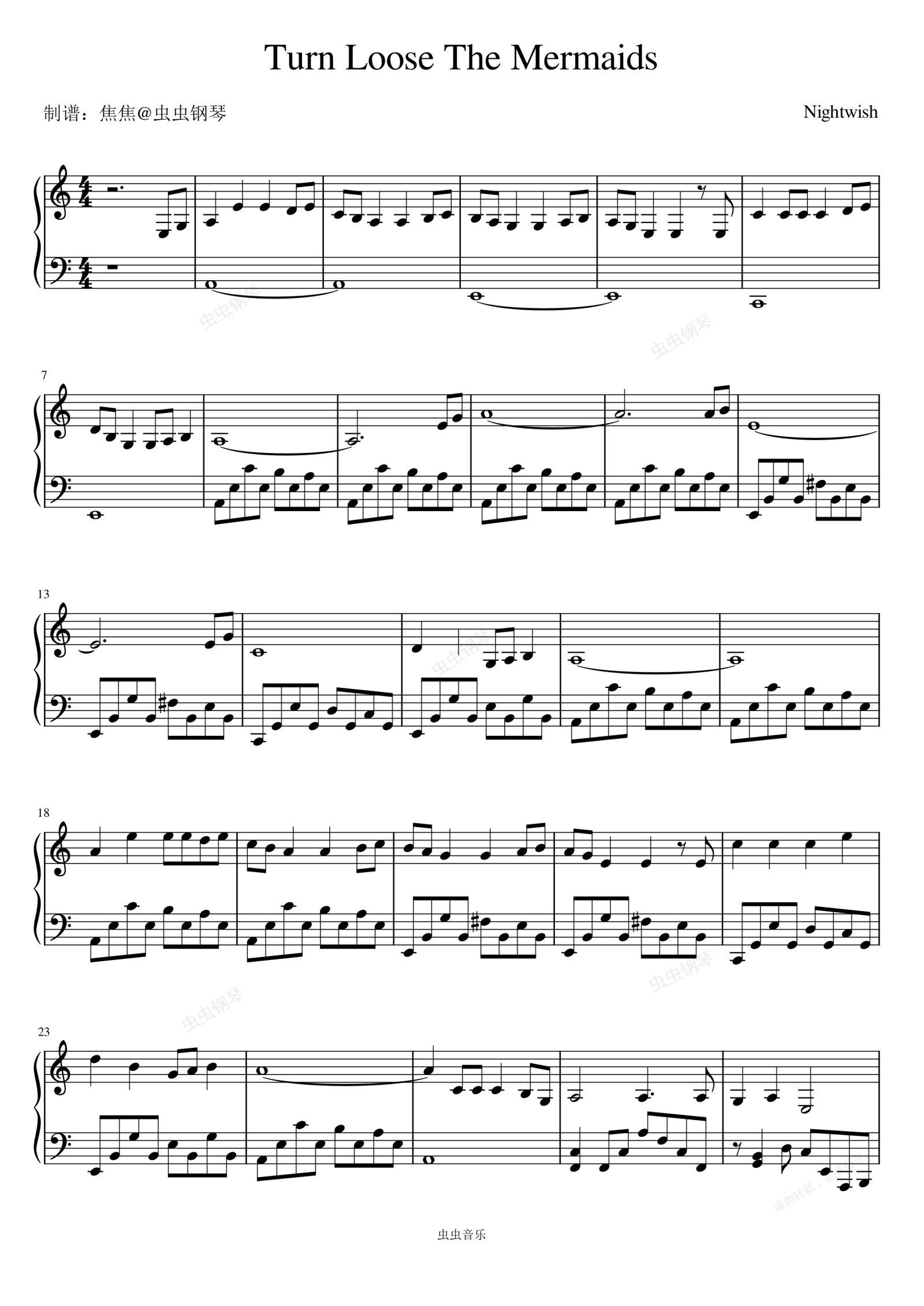 钢琴谱:Turn Loose the Mermaids - Nightwish (夜愿)