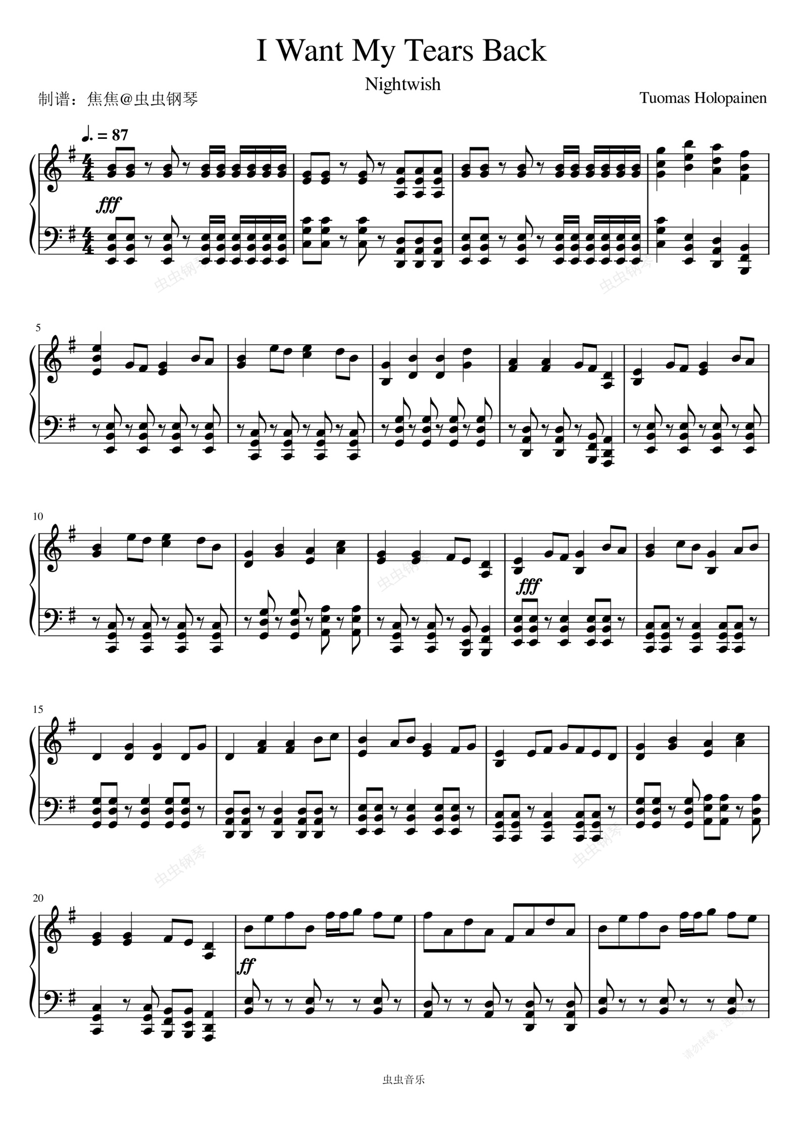 钢琴谱:I Want My Tears Back - Nightwish (夜愿)