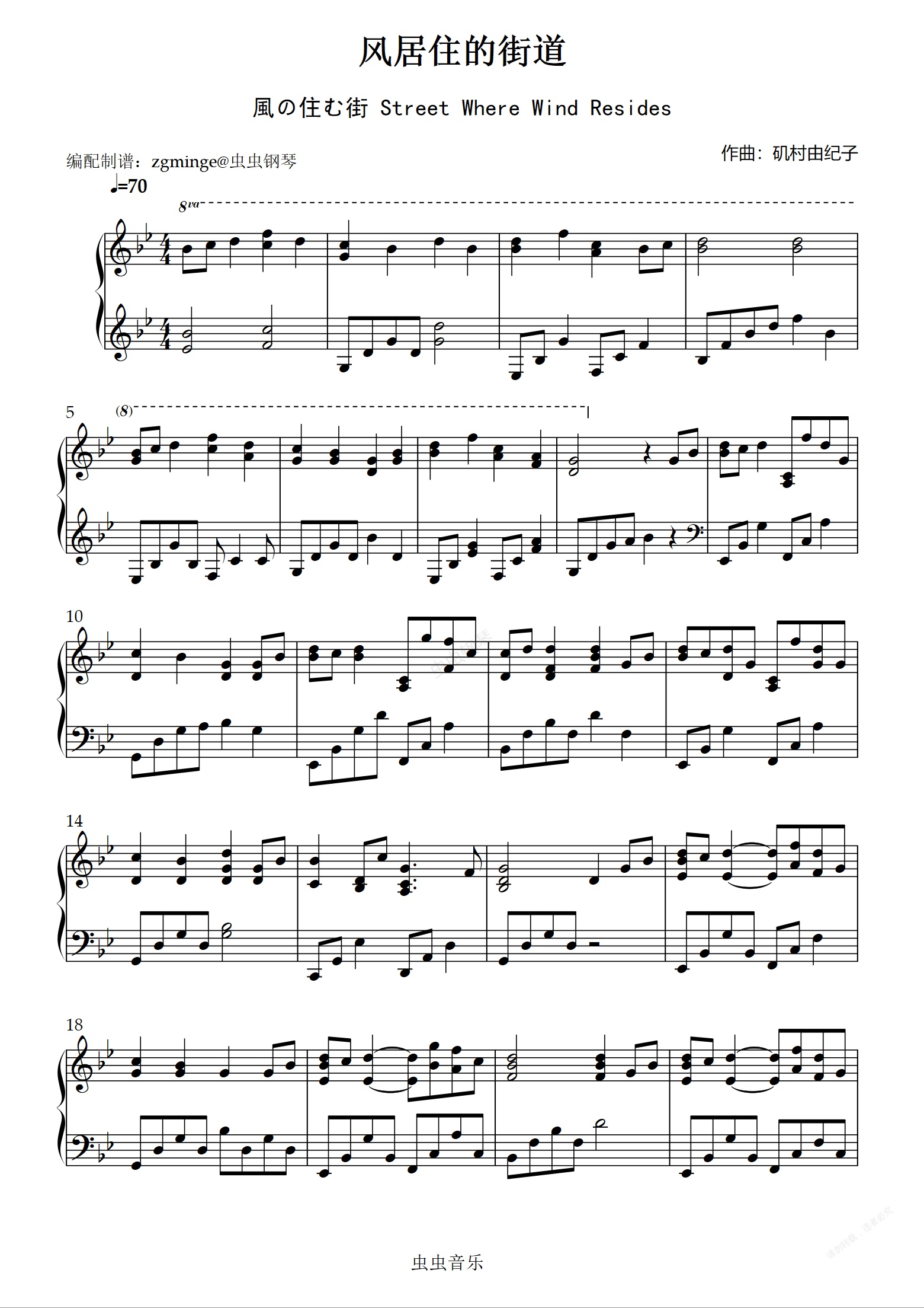 钢琴谱:风居住的街道 附带出版级伴奏(和“花之舞”产生摩擦)