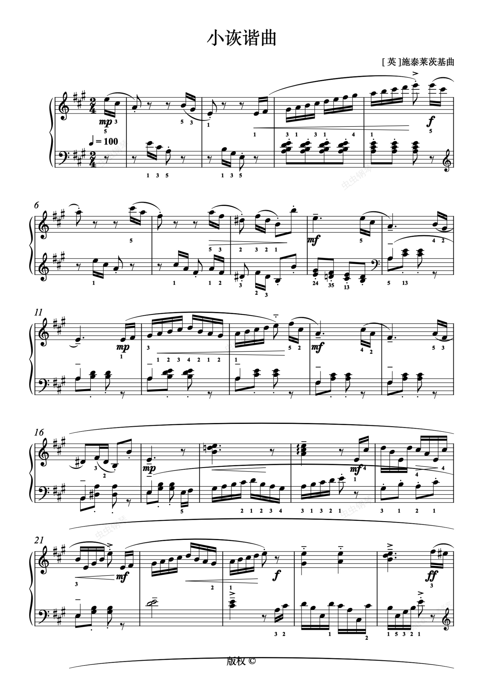 钢琴谱:12.小诙谐曲 施泰莱茨基曲