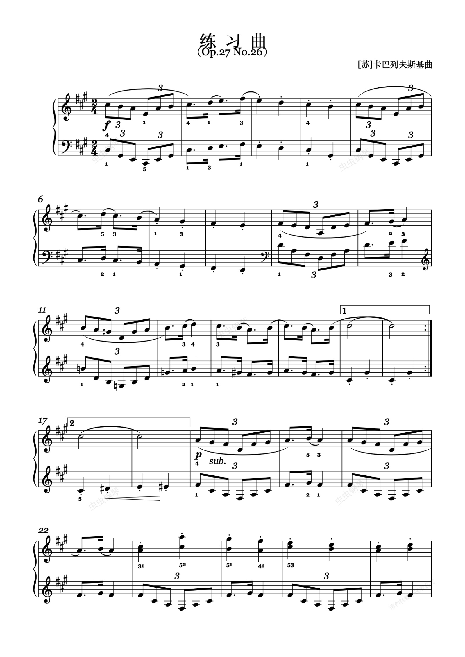 钢琴谱:7.练习曲Op.27 No.26 卡巴列夫斯基曲