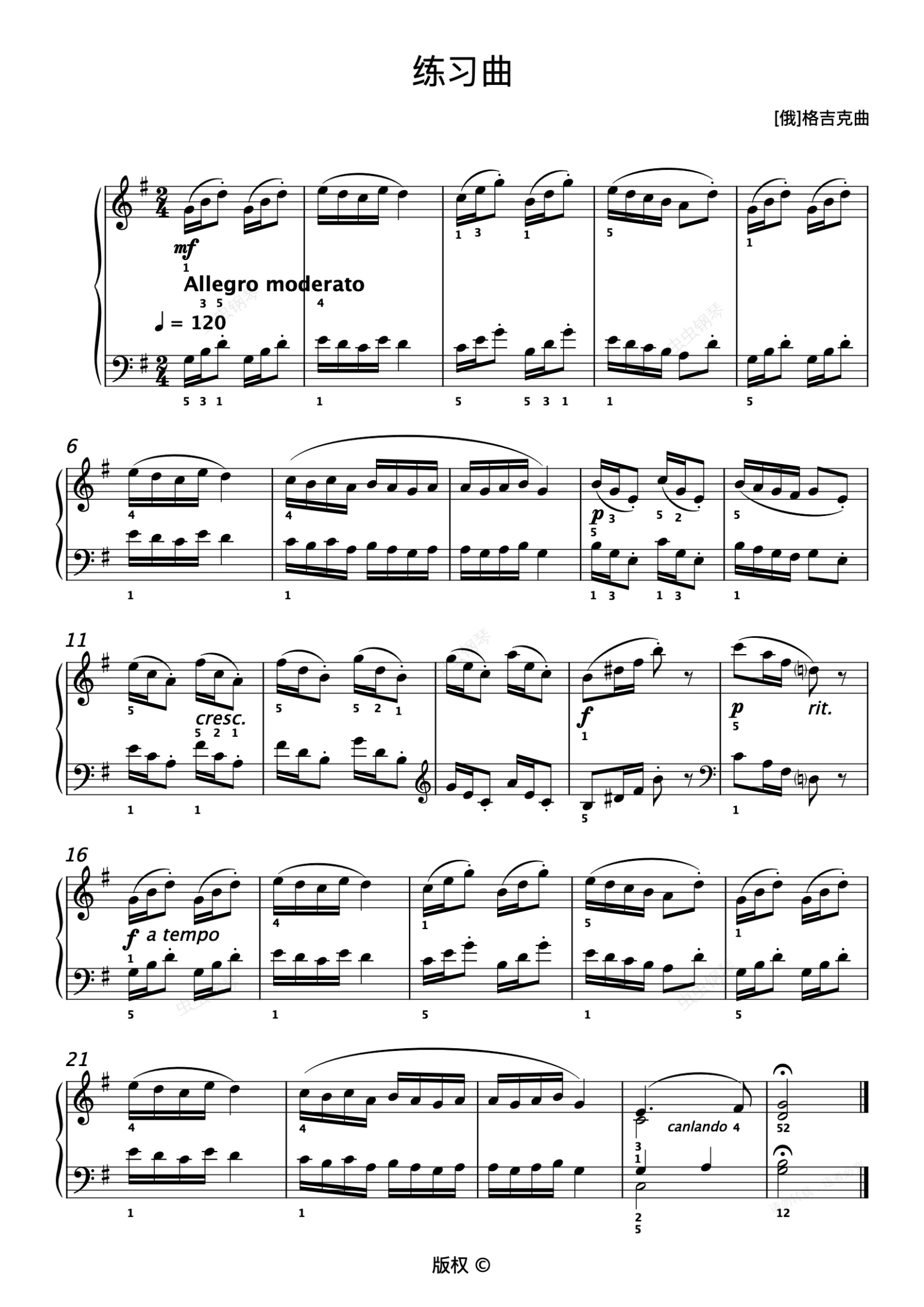 钢琴谱:12.练习曲 [俄]格吉克曲