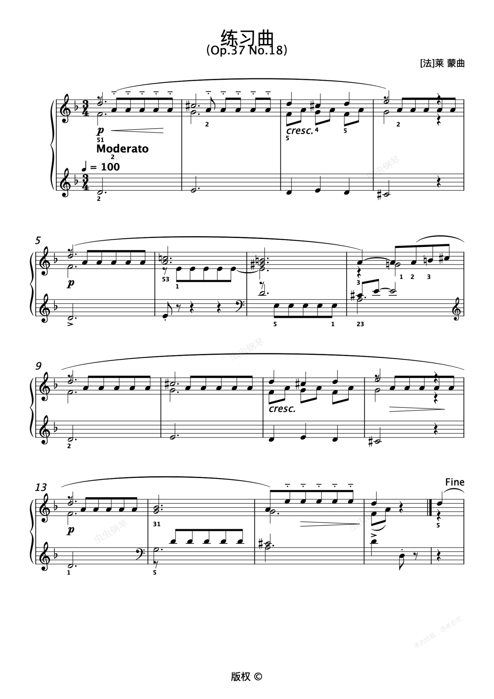钢琴谱:18.练习曲 (Op.37 No.18)
