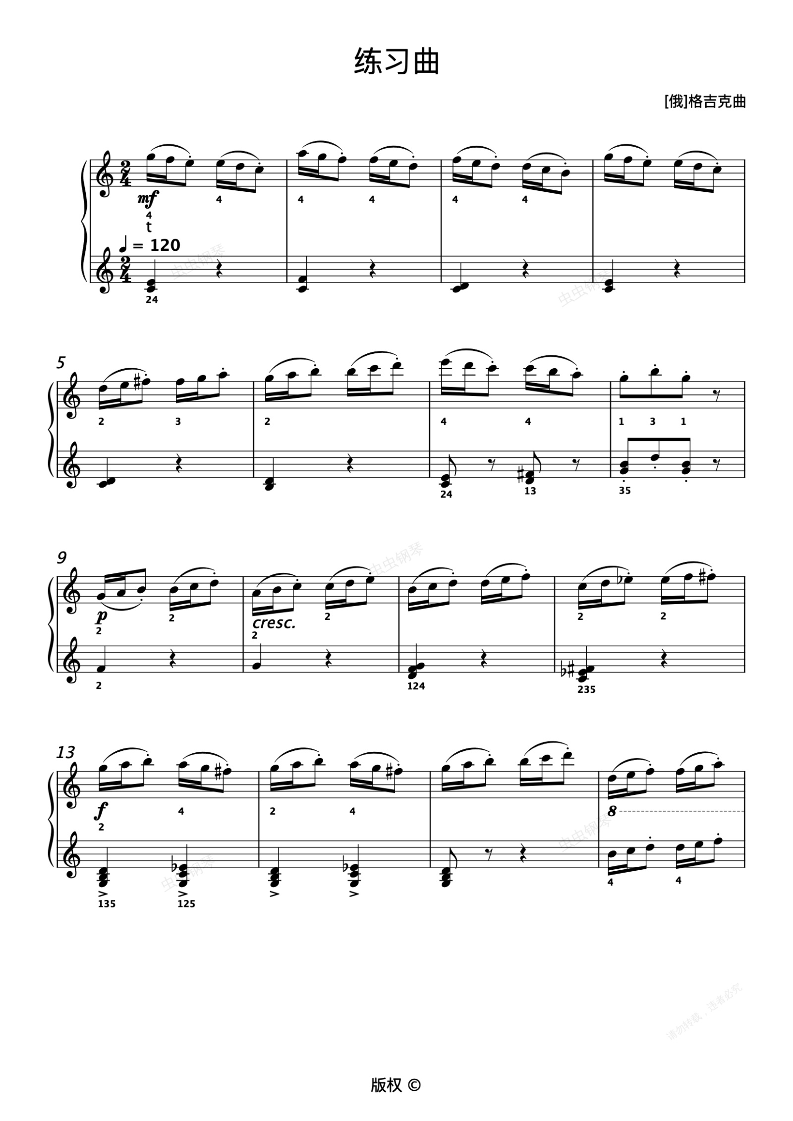 钢琴谱:50.练习曲 [俄]格吉克曲