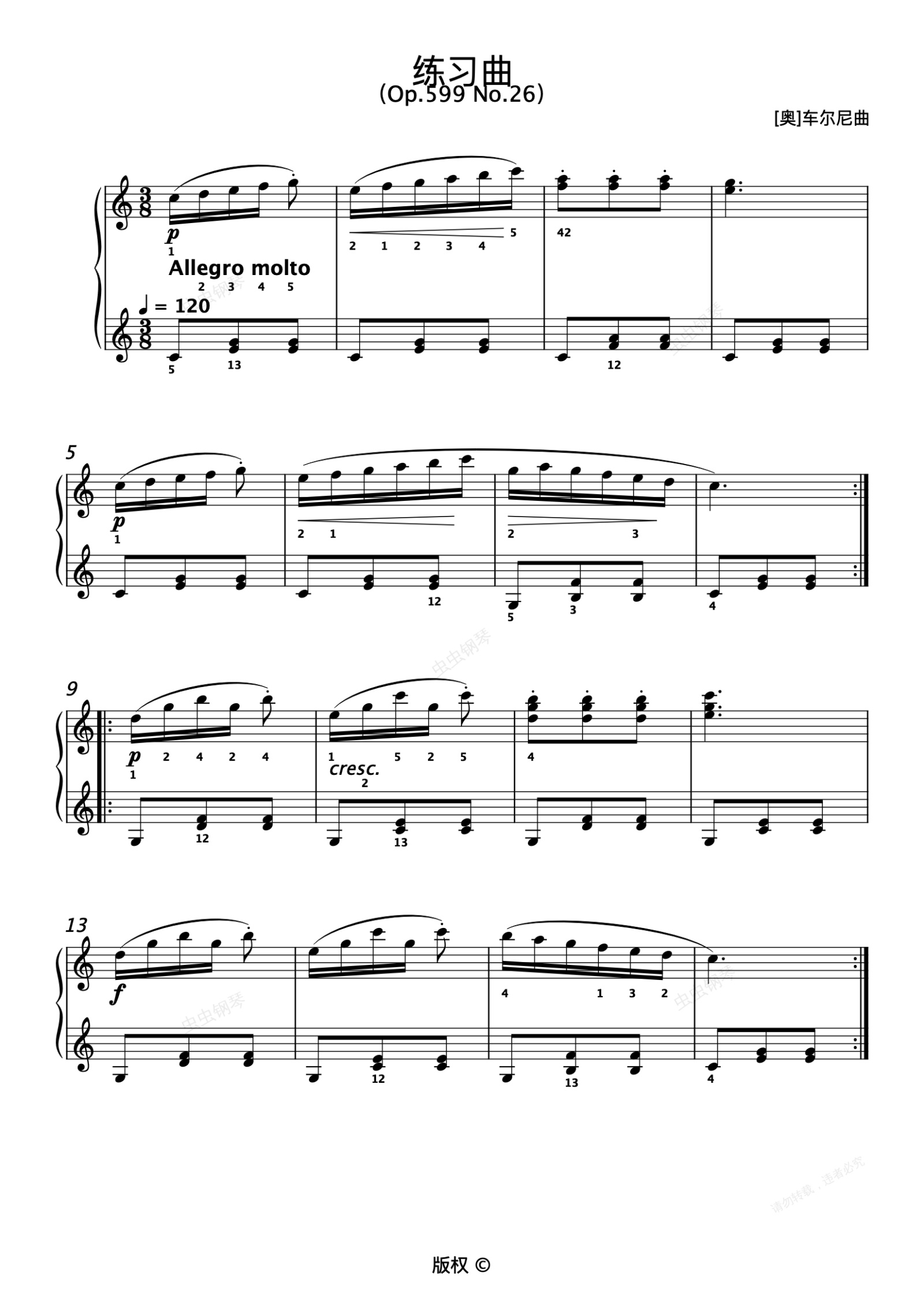 钢琴谱:56.练习曲 (Op.599 No.26)