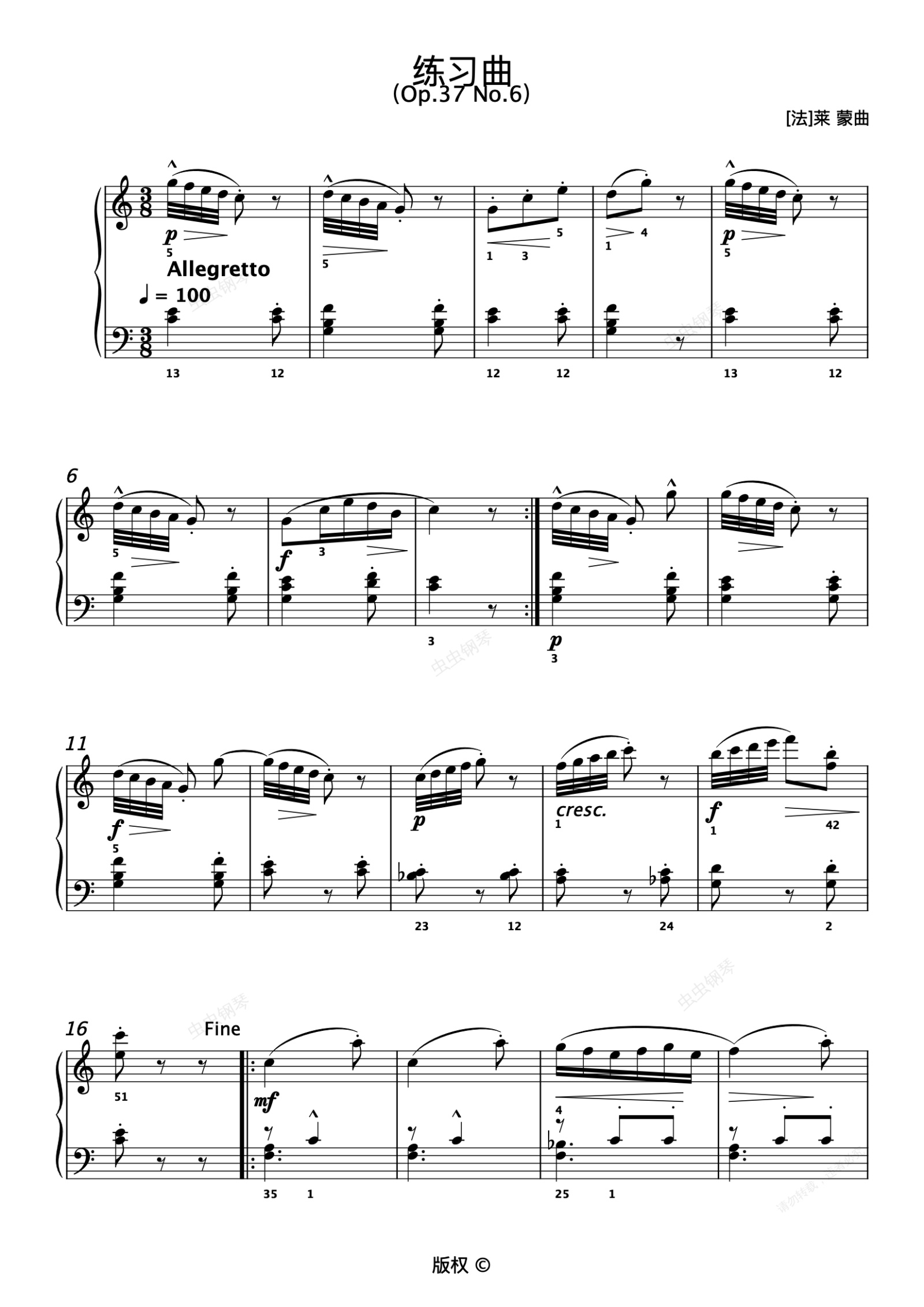 钢琴谱:60.练习曲 (Op.37 No.6)
