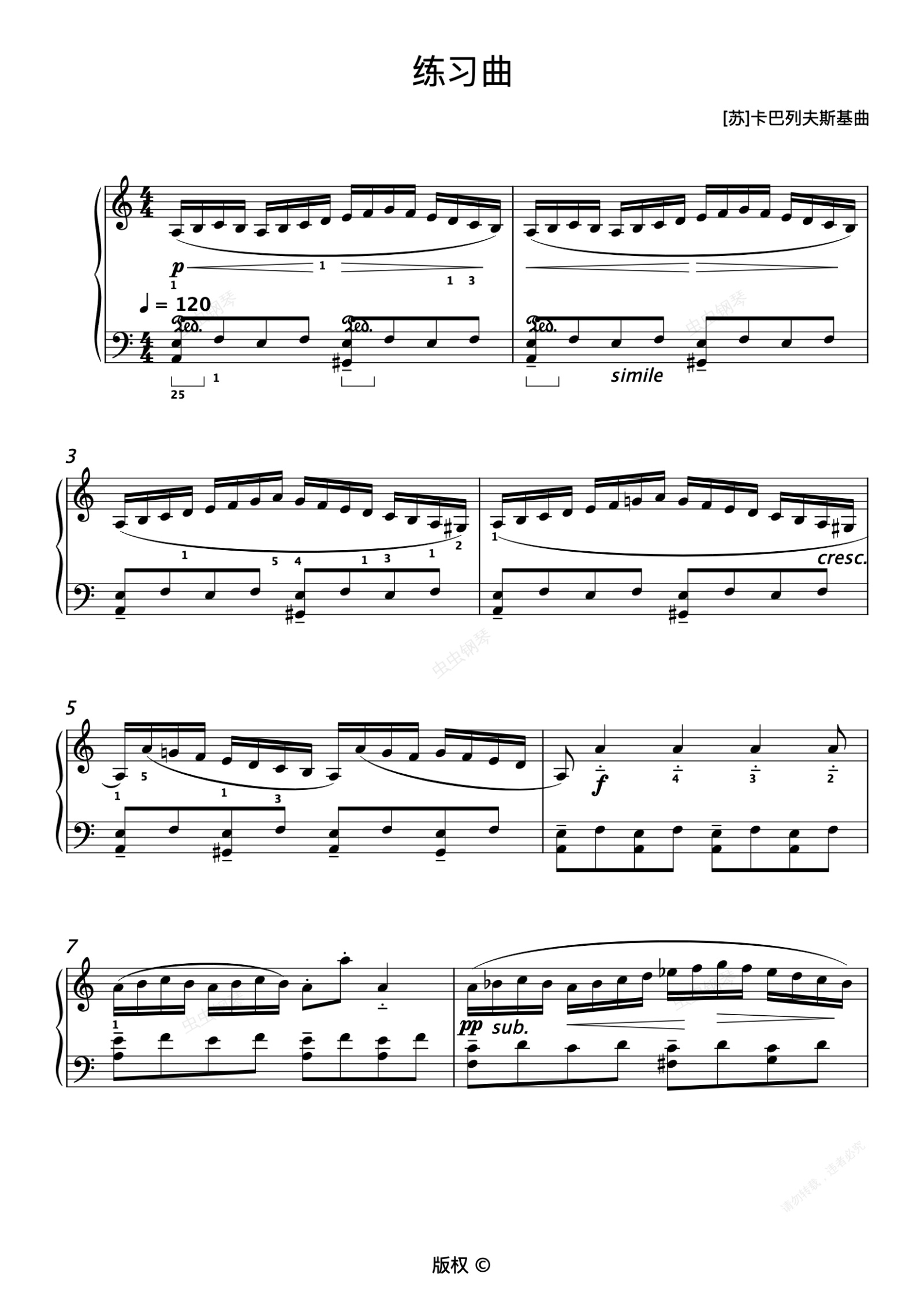 钢琴谱:72.练习曲 [苏]卡巴列夫斯基曲