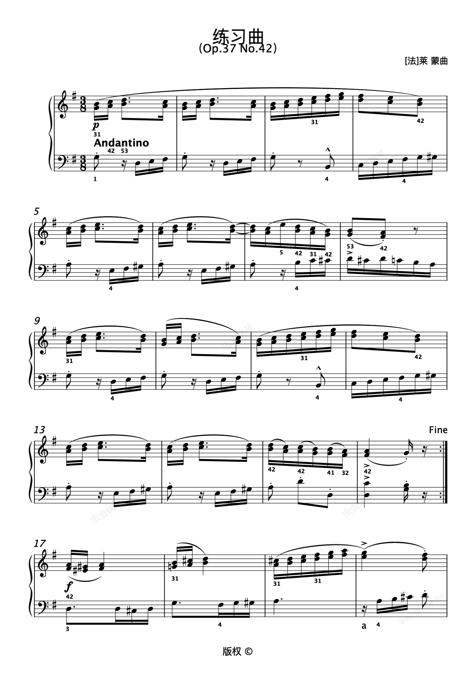 钢琴谱:101.练习曲 (Op.37 No.42)