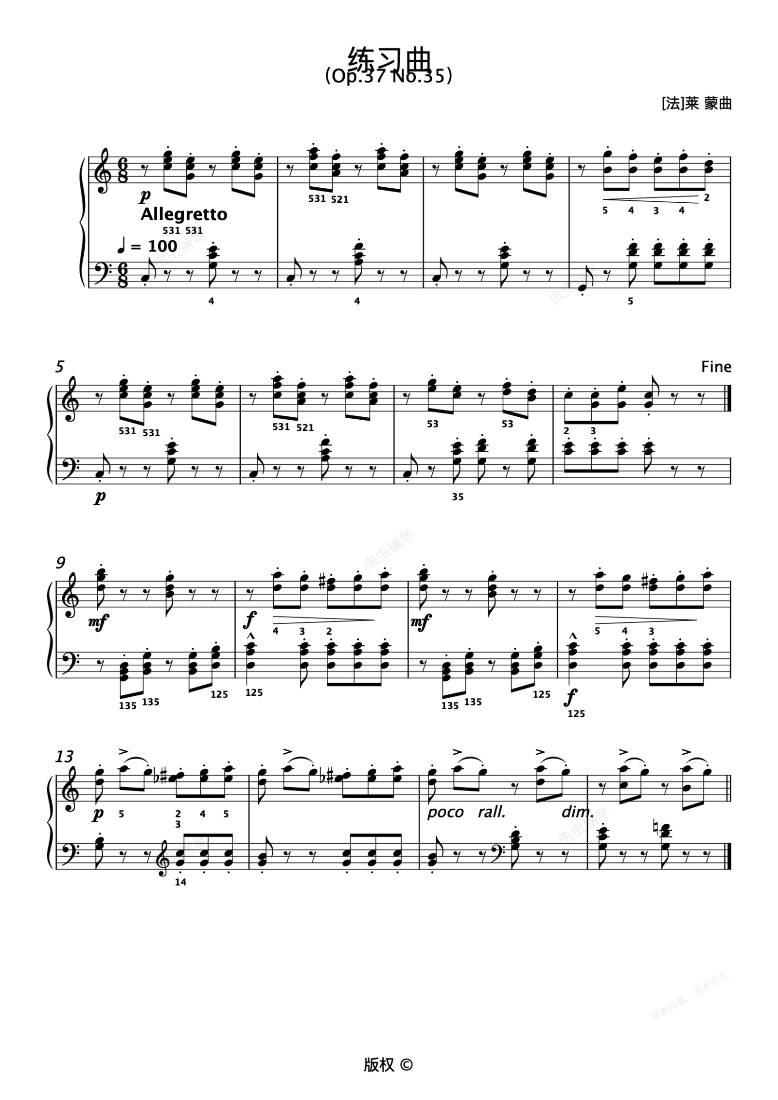 钢琴谱:109.练习曲 (Op.37 No.35)