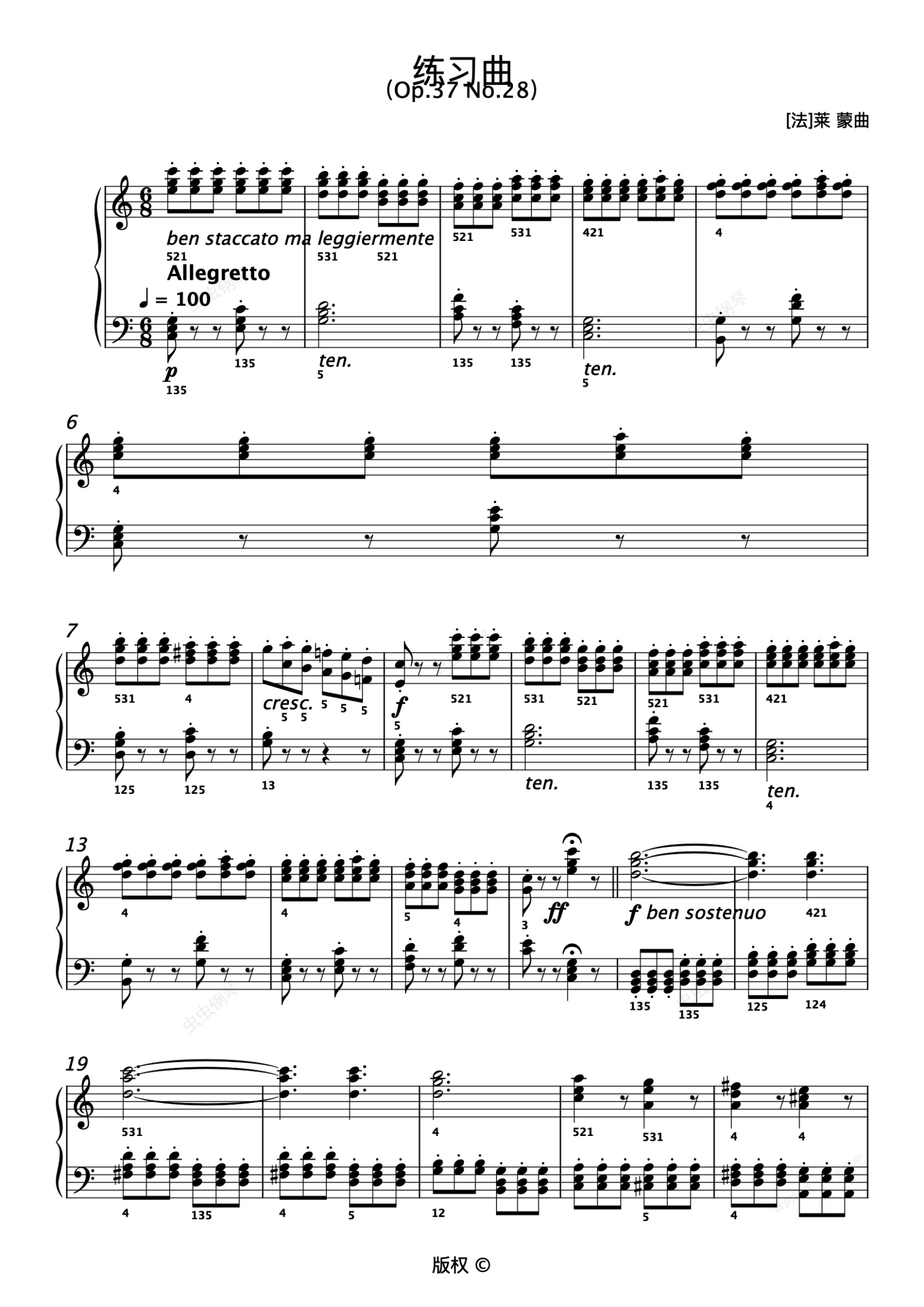 钢琴谱:110.练习曲 (Op.37 No.28)