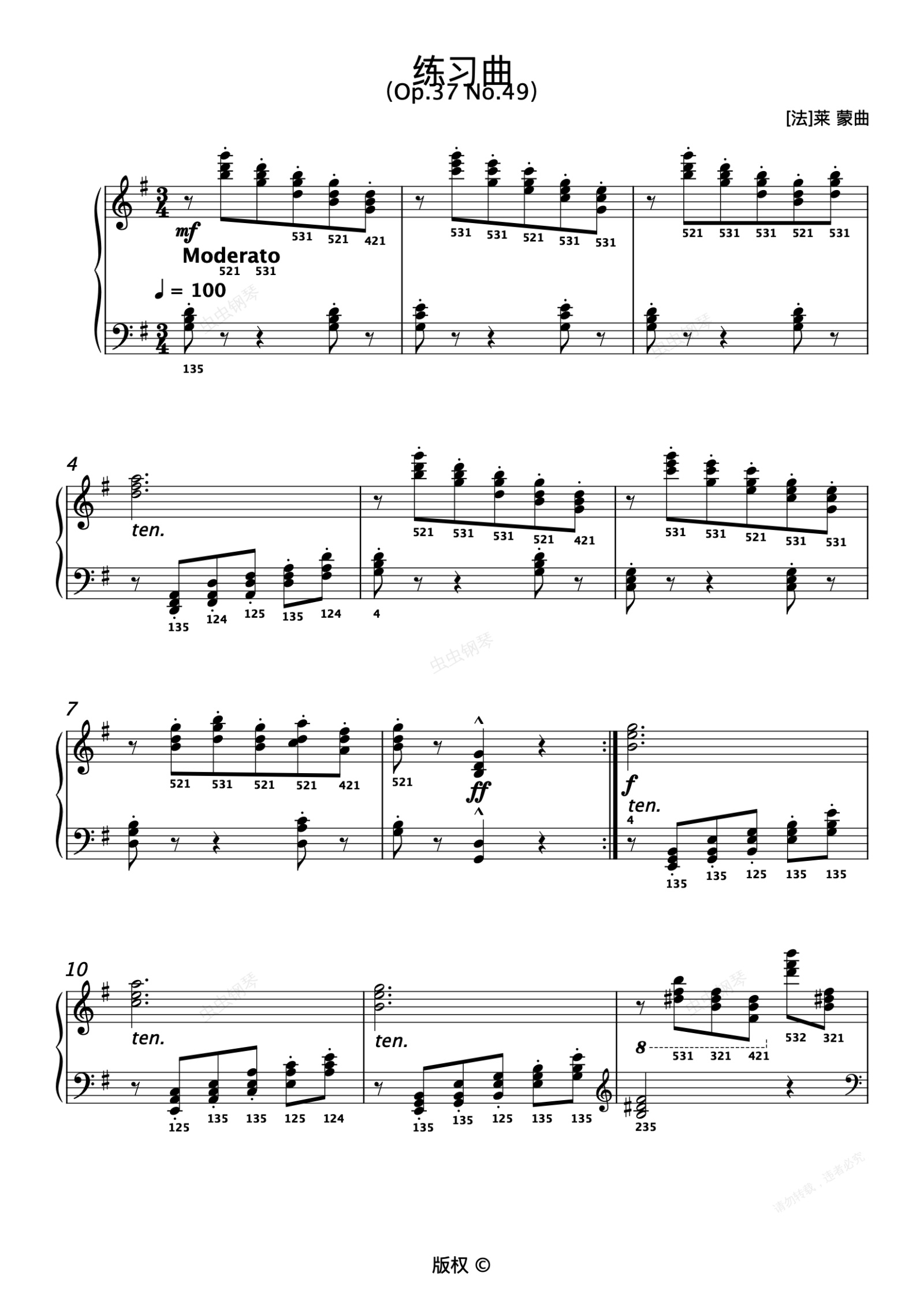 钢琴谱:111.练习曲 (Op.37 No.49)