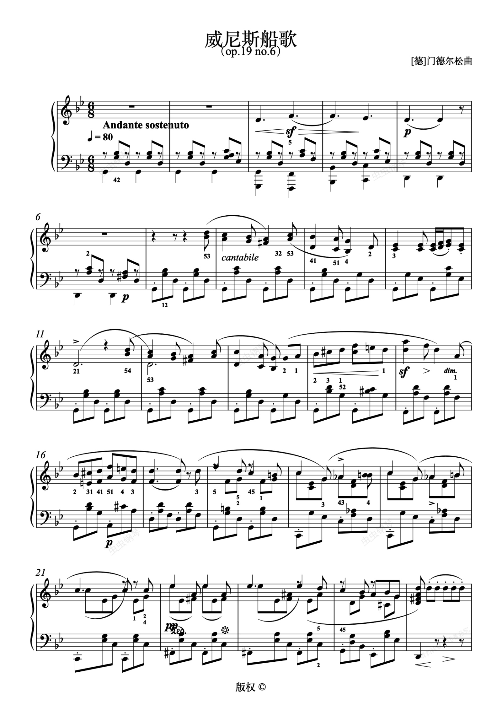 钢琴谱:29.威尼斯船歌 op.19 no.6