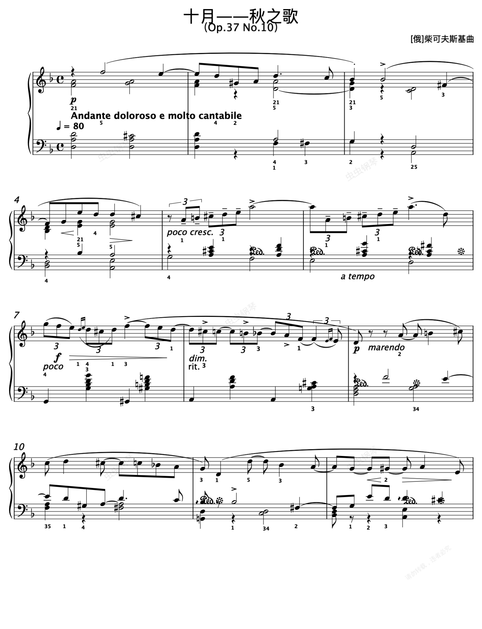 钢琴谱:32.十月(秋之歌)