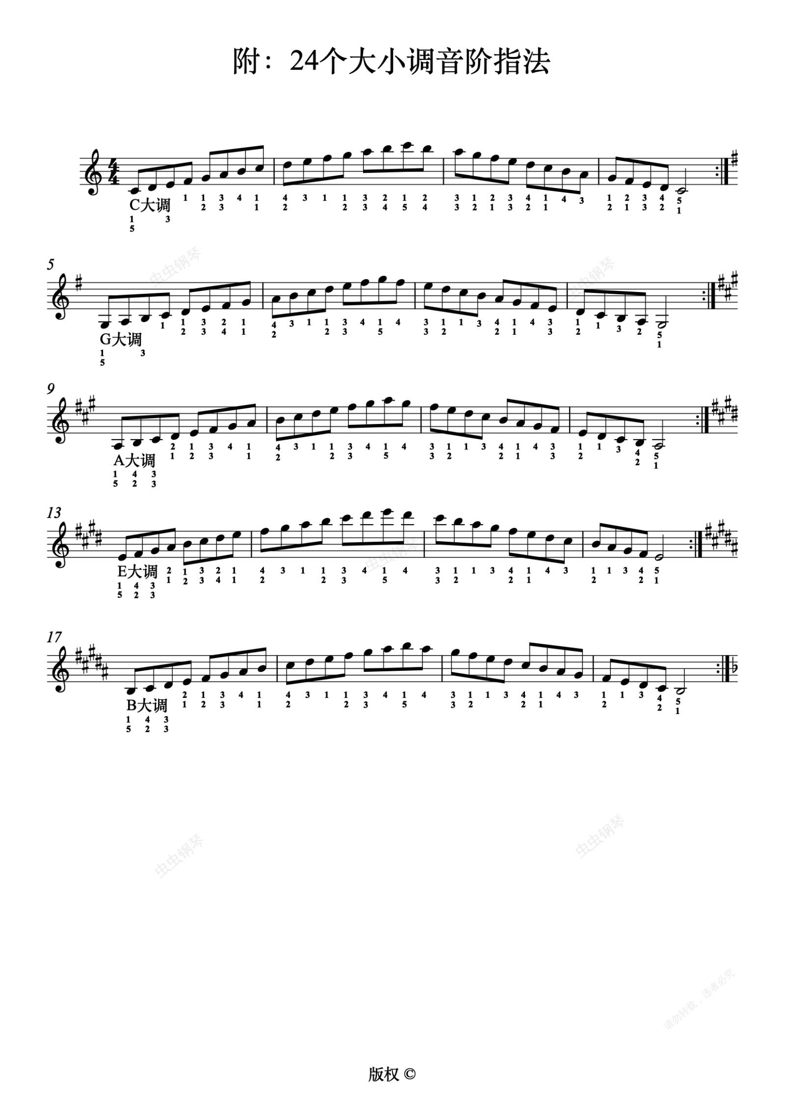 钢琴谱:Ⅲ.11-2音阶-附:24个大小调音阶指法