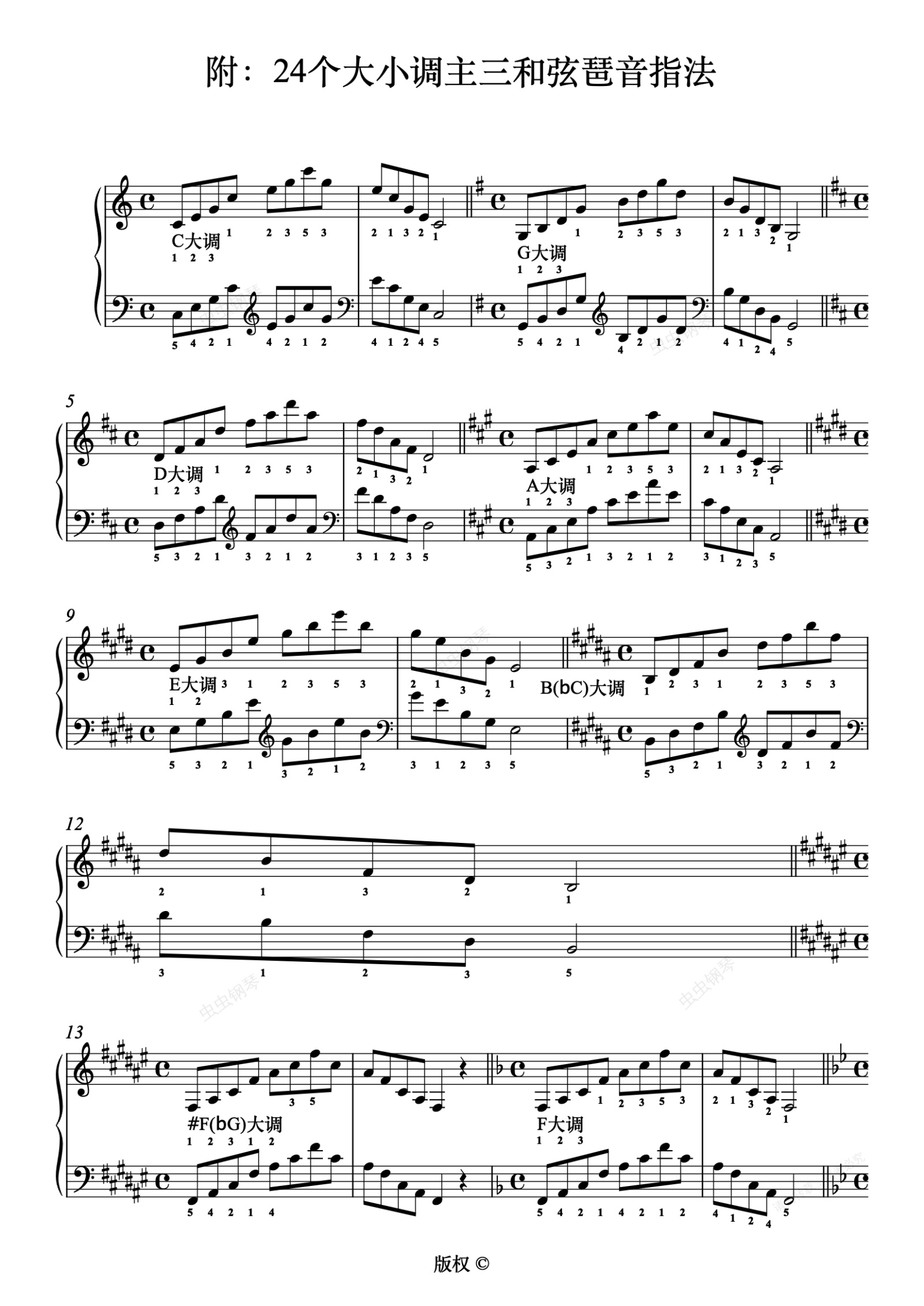 钢琴谱:Ⅲ.11-4琶音-附:24个大小调主三和弦琶音指法