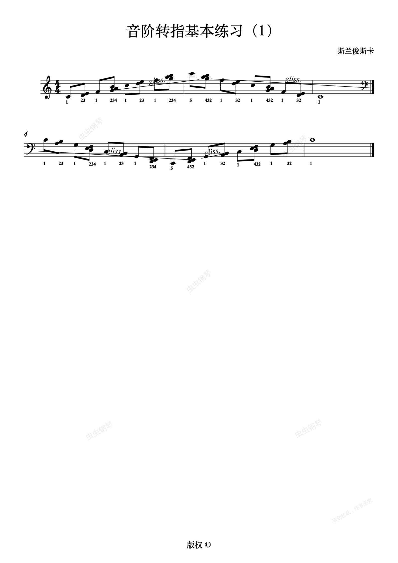 钢琴谱:Ⅲ.11-2音阶转指基本练习(1)