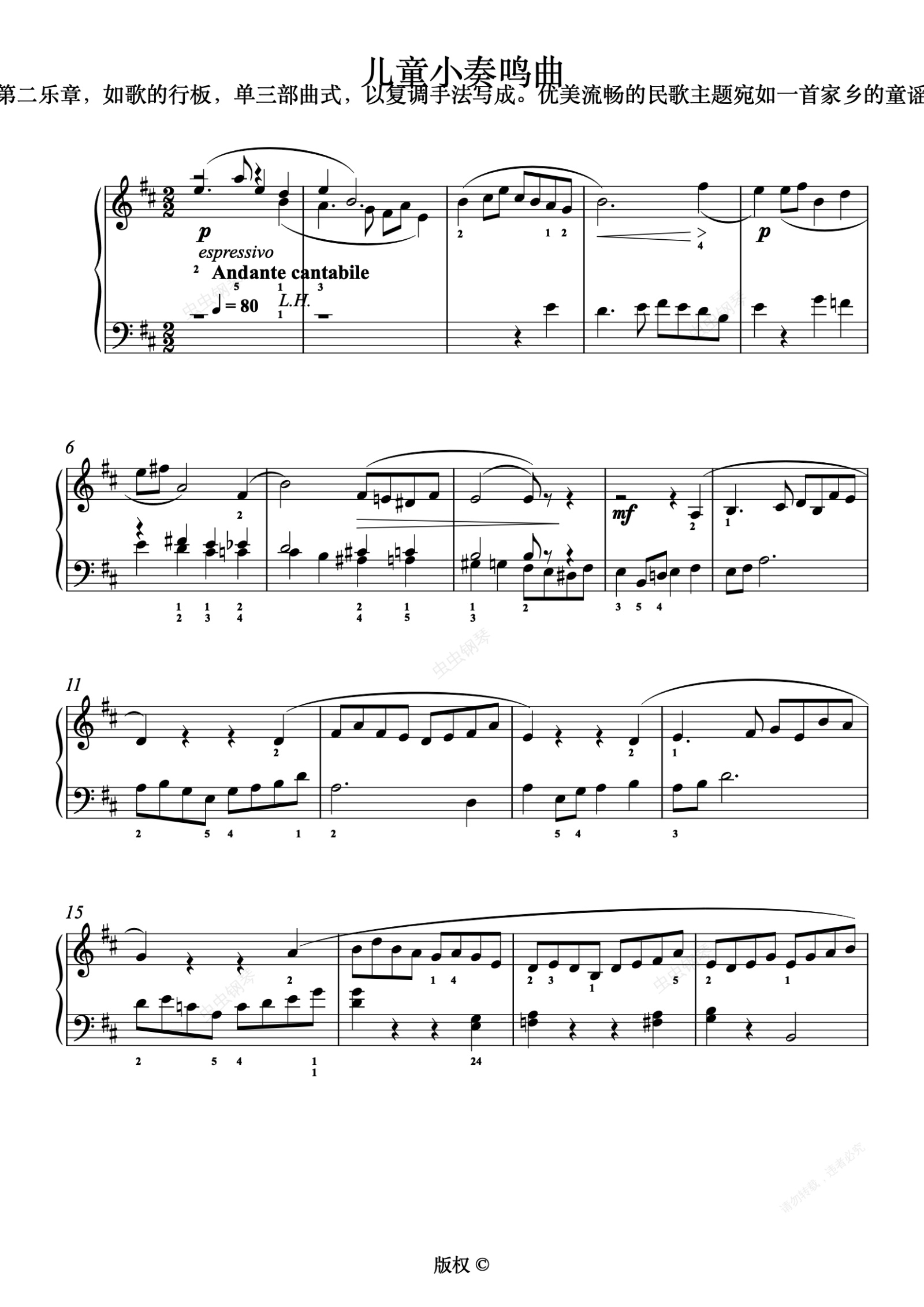 钢琴谱:40.儿童小鸣奏曲 第二乐章