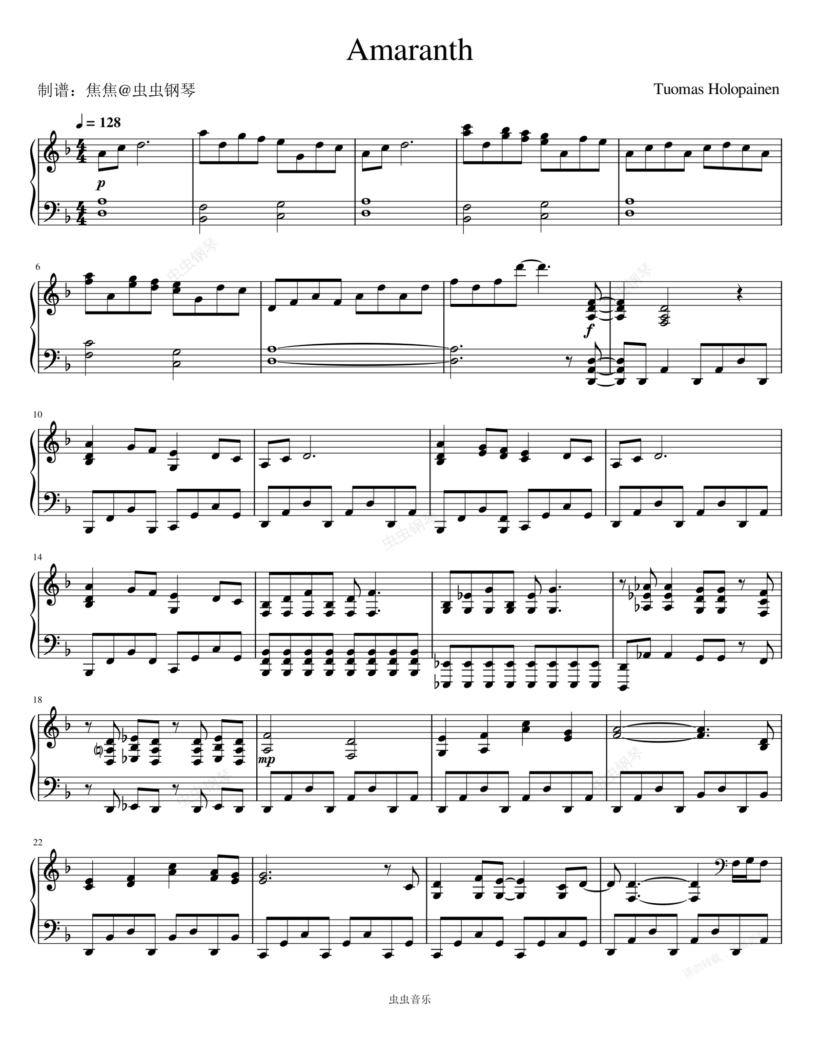 钢琴谱:Amaranth (Album Version) - Nightwish (夜愿)