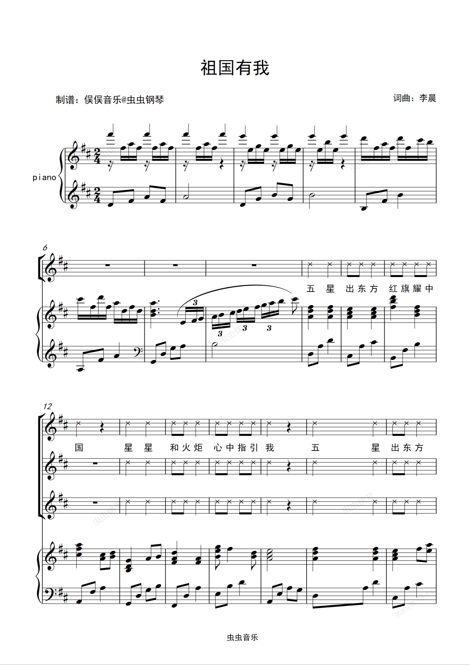 钢琴谱:祖国有我 - 合唱伴奏谱