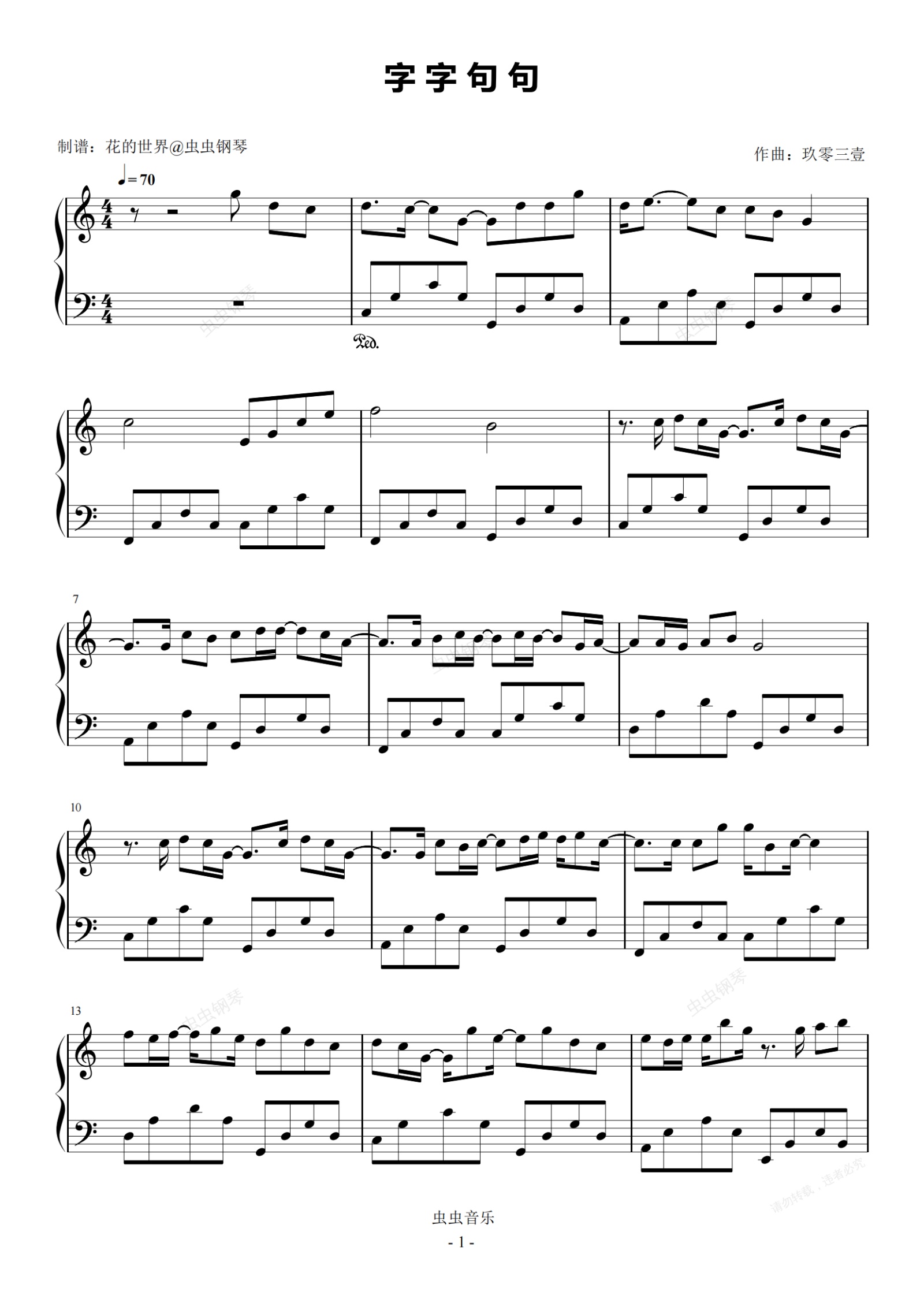 钢琴谱:字字句句 C调简易版 张碧晨 王赫野