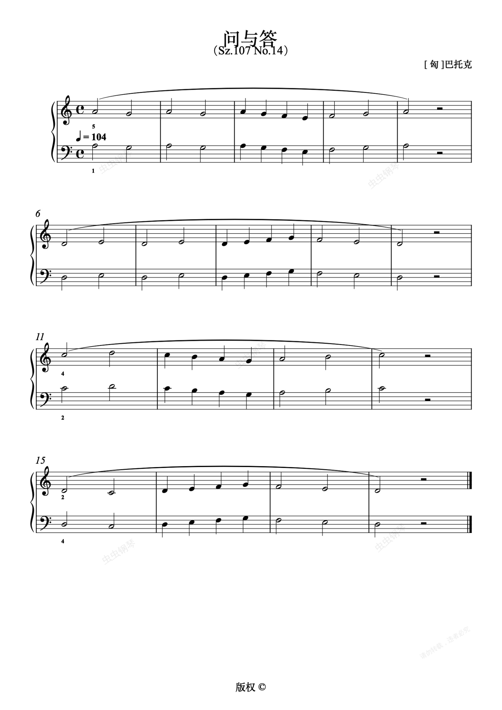 钢琴谱:61.问与答(Sz.107 No.14)