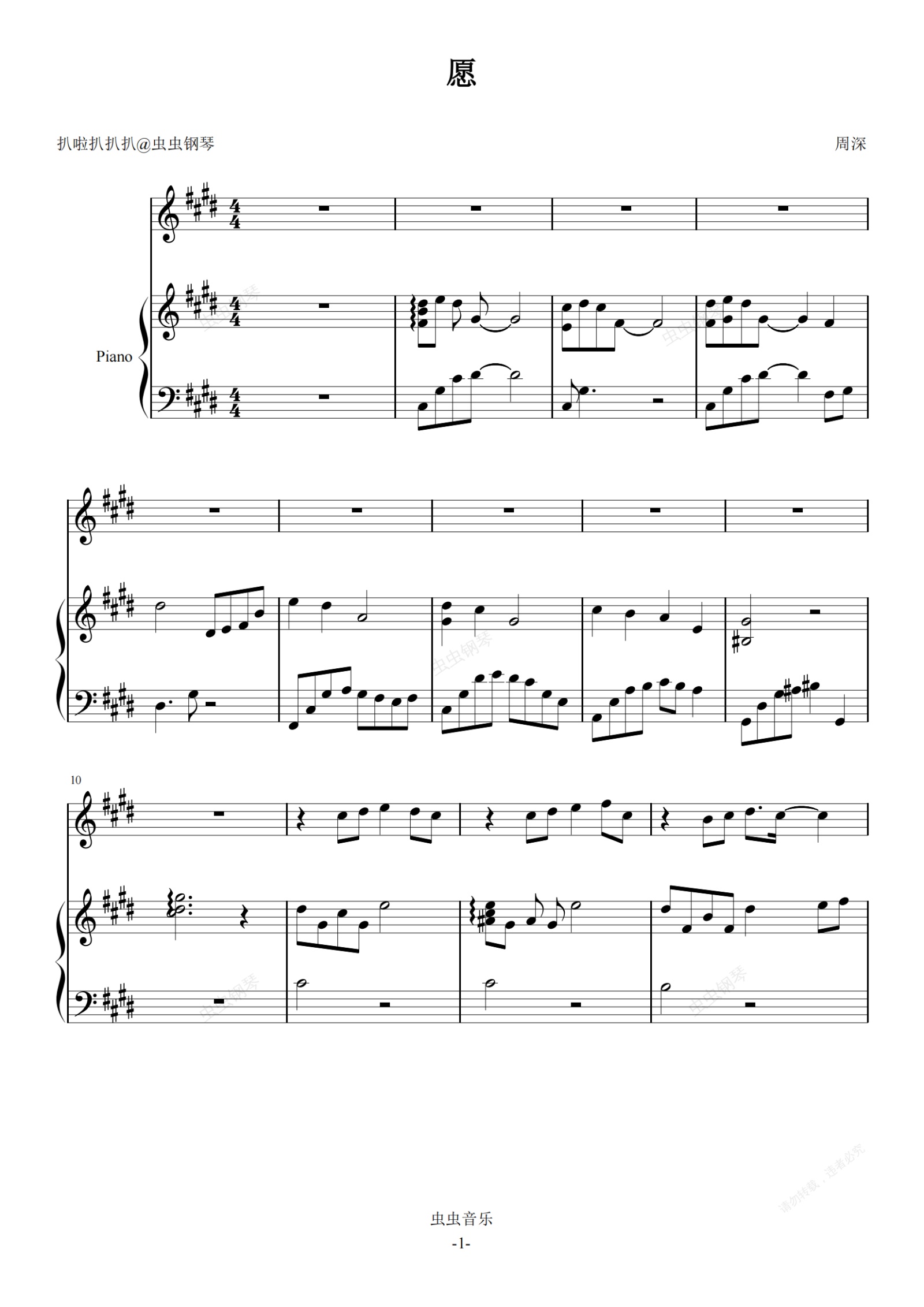 钢琴谱:《愿》-周深-钢琴伴奏谱 深情版