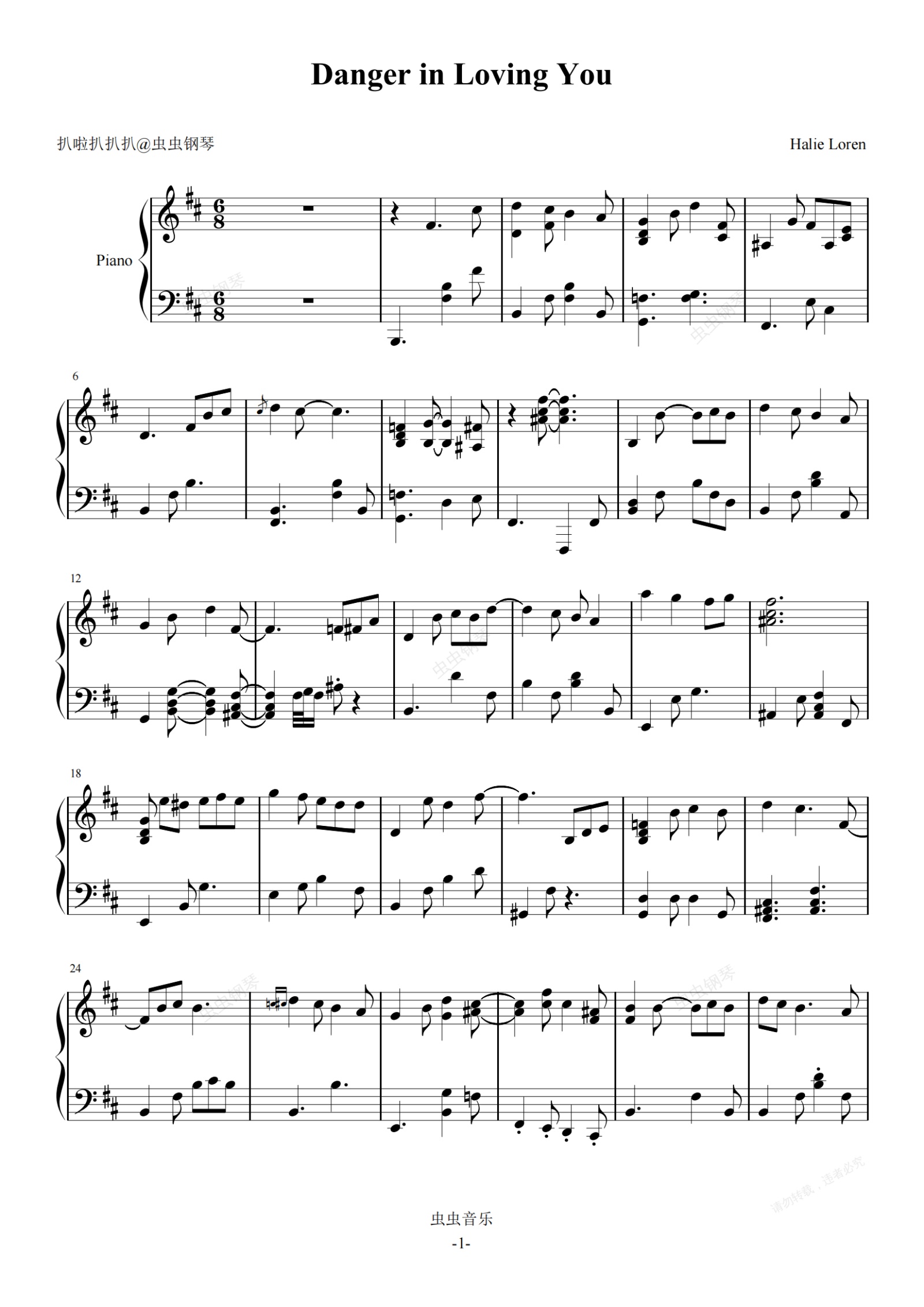 钢琴谱:《Danger in Loving You》-Halie Loren-钢琴演奏谱 优雅版