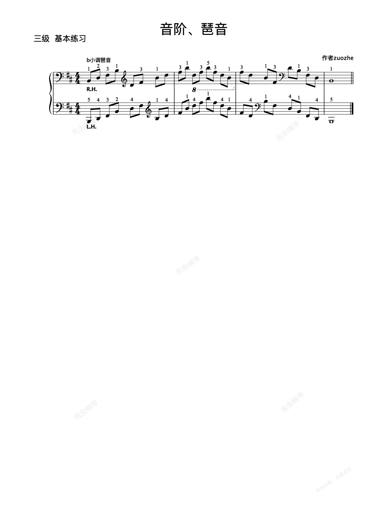 钢琴谱:3级-4. b小调琶音