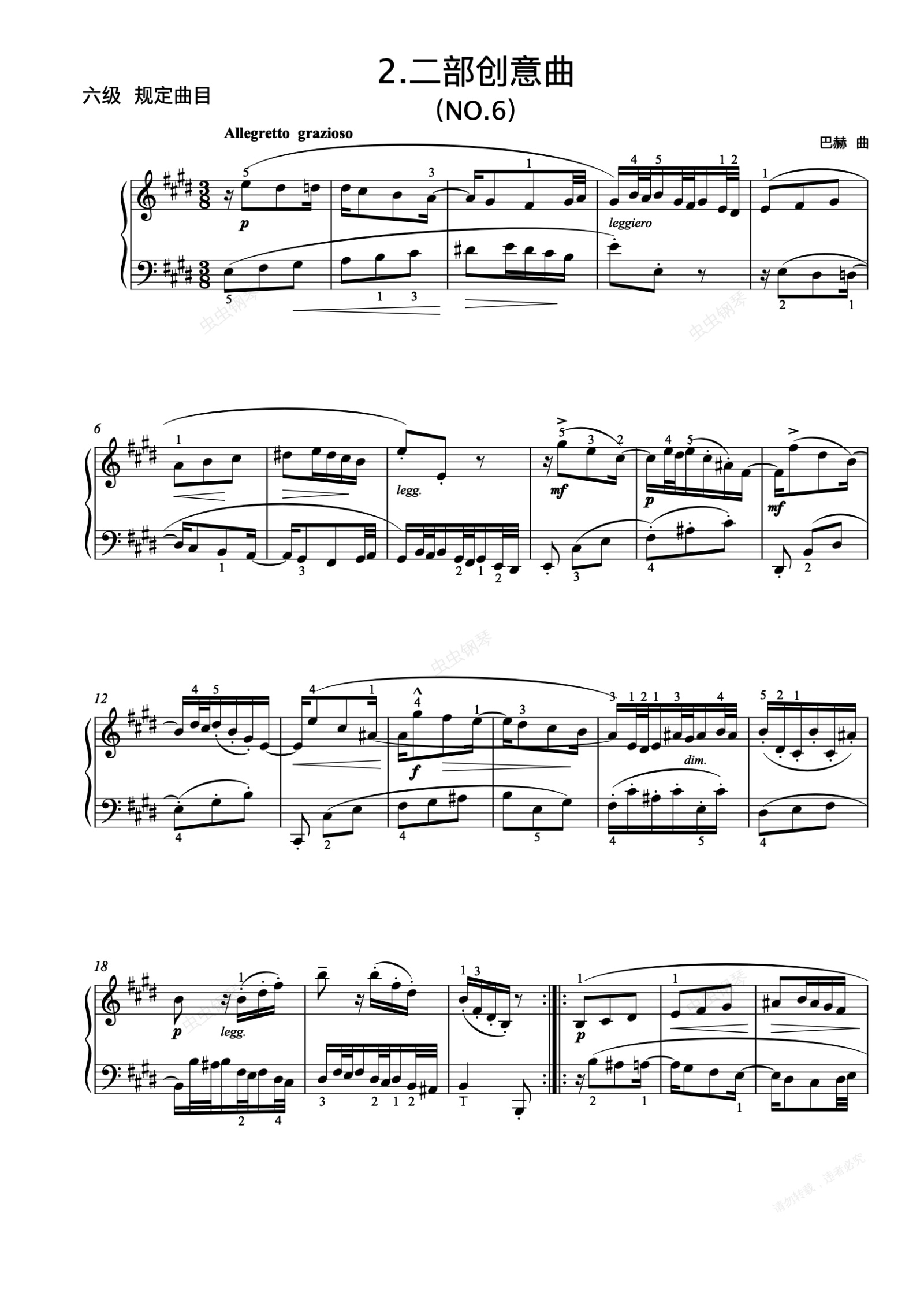 钢琴谱:6级-A-2. 二部创意曲(No.6)