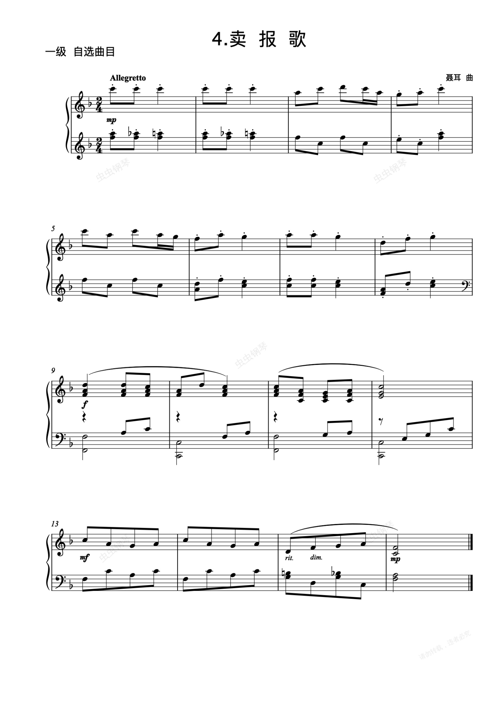 钢琴谱:1级-自选-4. 卖报歌