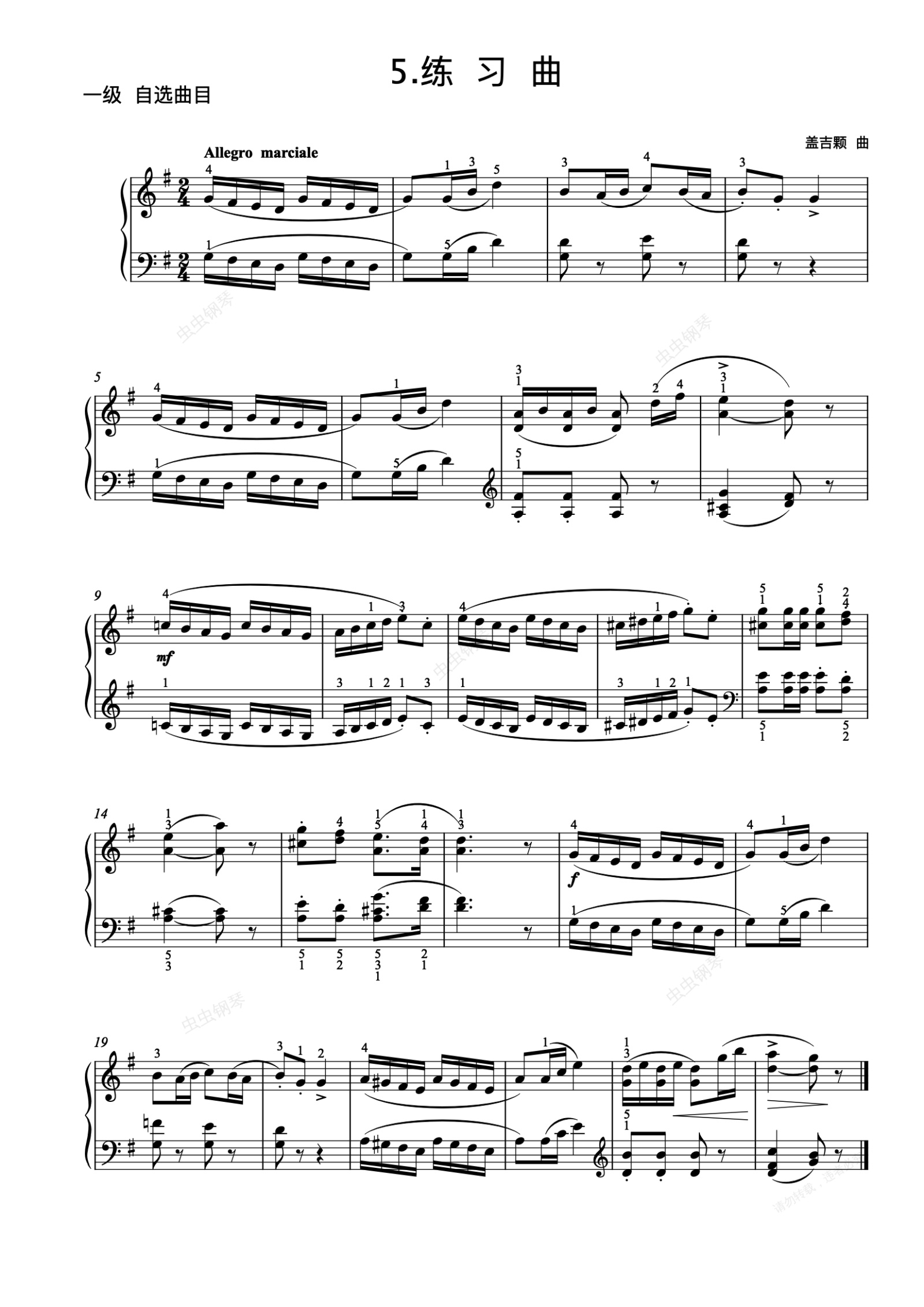 钢琴谱:1级-自选-5. 练习曲