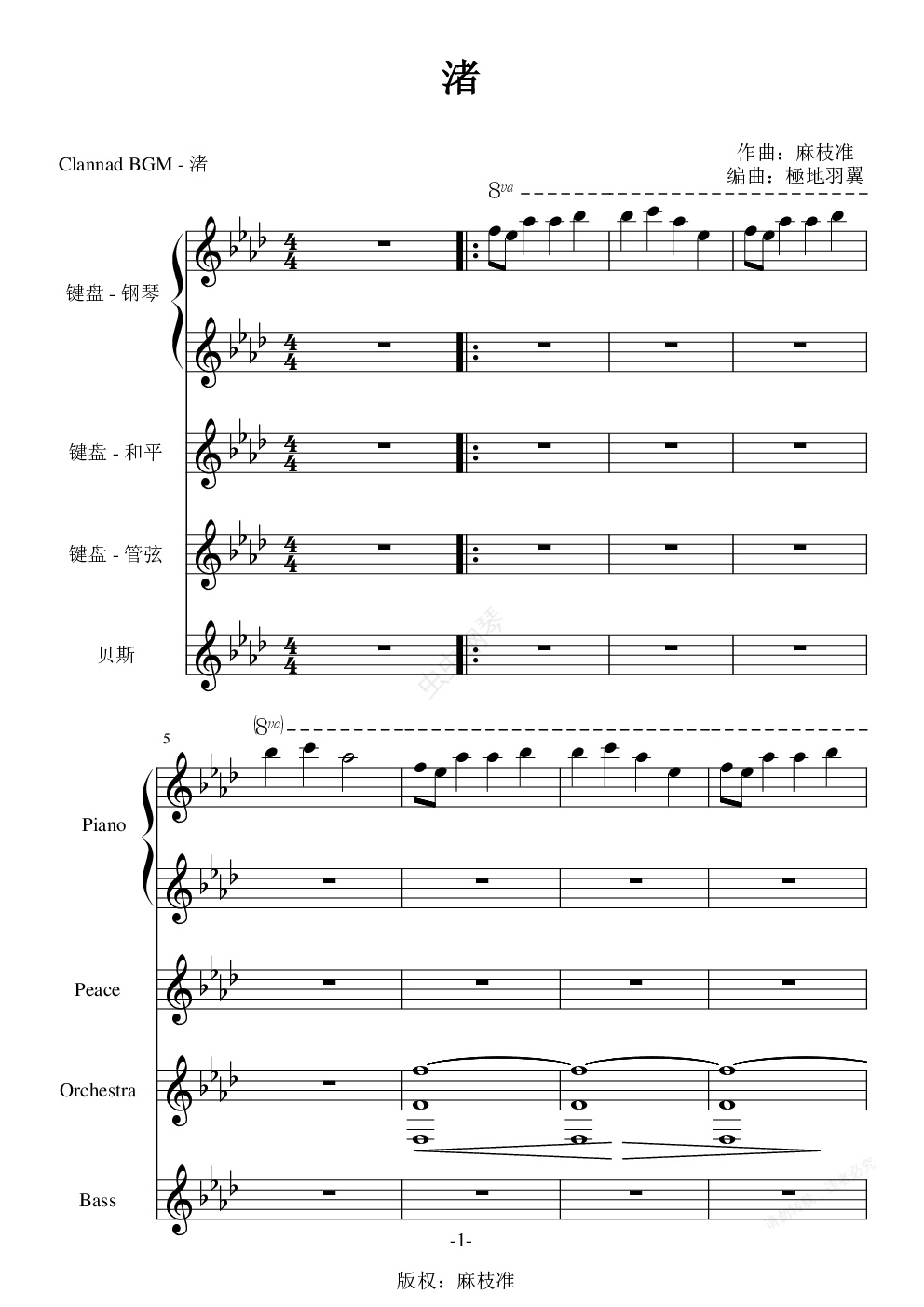 钢琴谱:渚