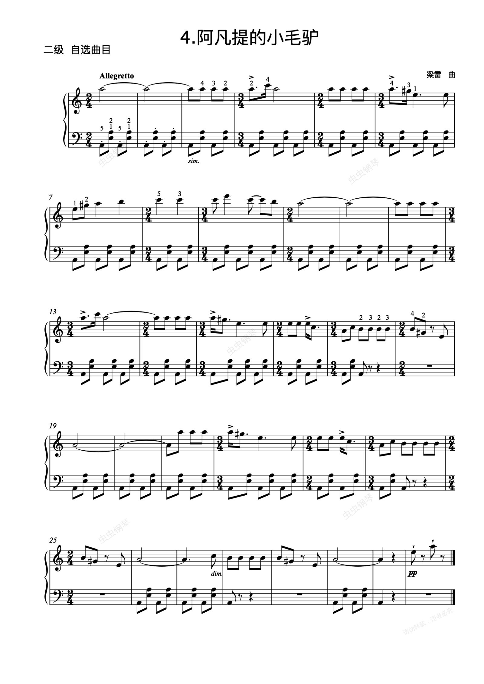 钢琴谱:2级-自选-4. 阿凡提的小毛驴