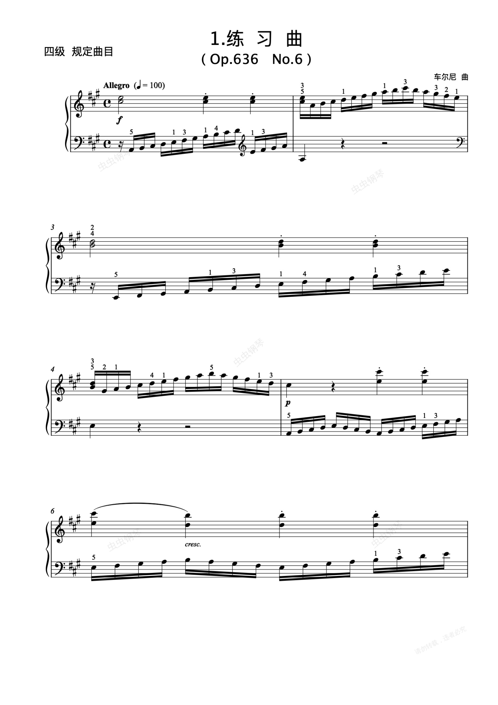 钢琴谱:4级-A-1. 练习曲(Op.636 No.6)