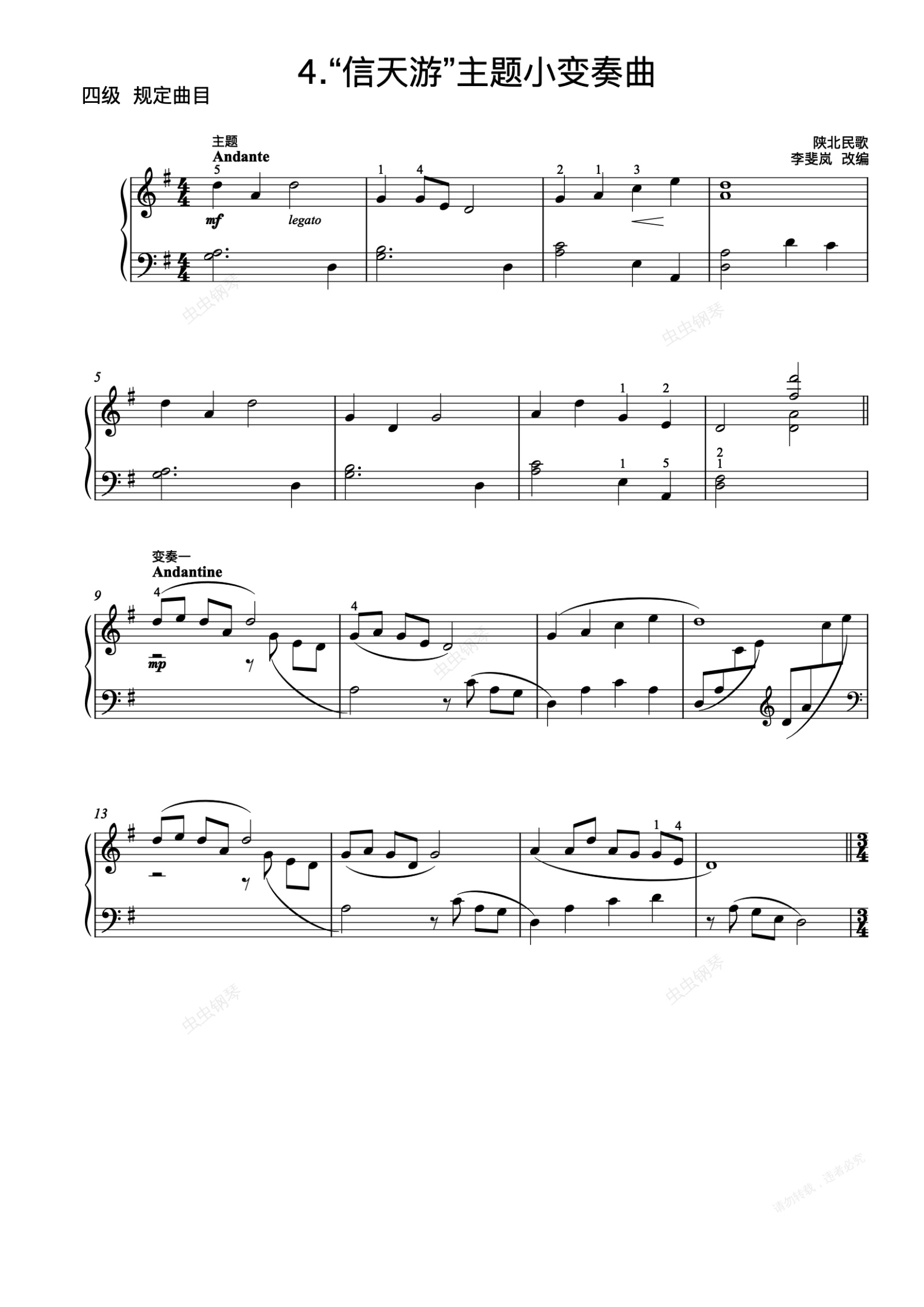 钢琴谱:4级-A-4. 信天游主题小变奏曲